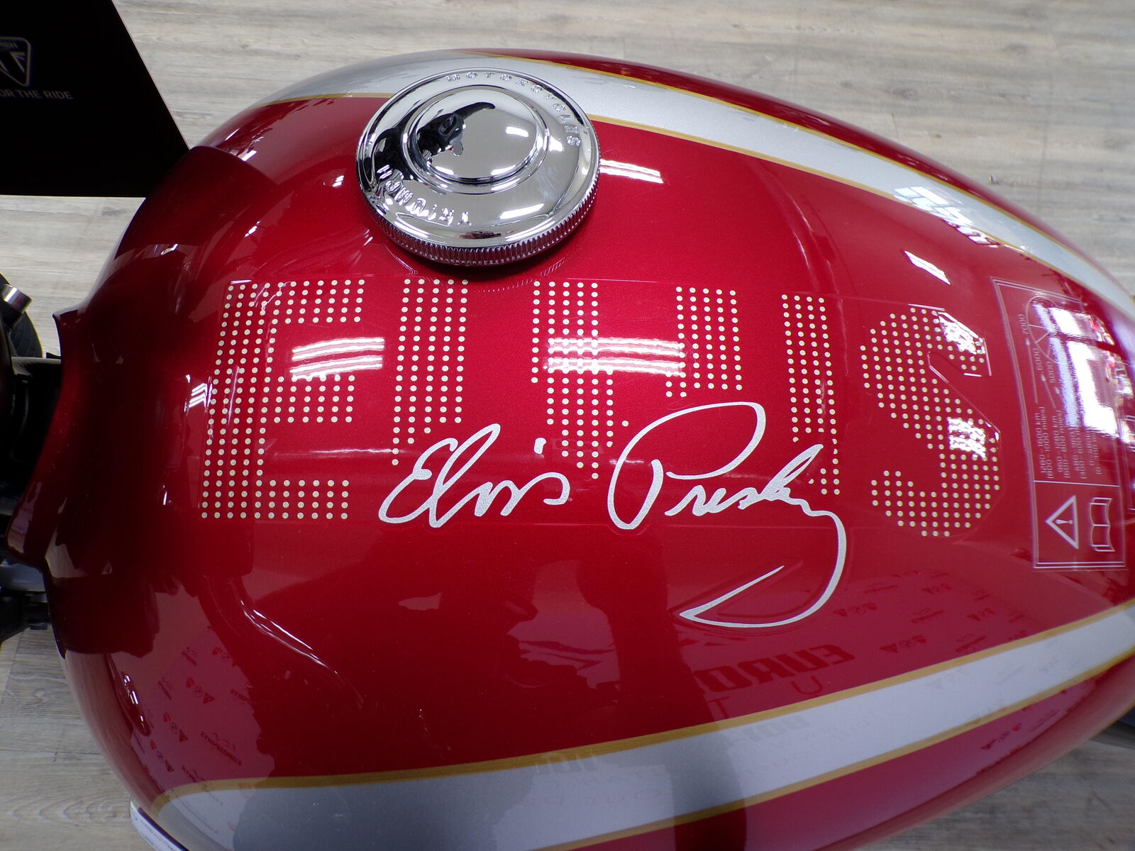 Elvis Is In The Building!Limited to just 925 motorcycles worldwide, each one is individually numbered and presented with a gold disc in a unique Elvis Presley and Triumph Motorcycles record sleeve containing a signed certificate of authenticity.