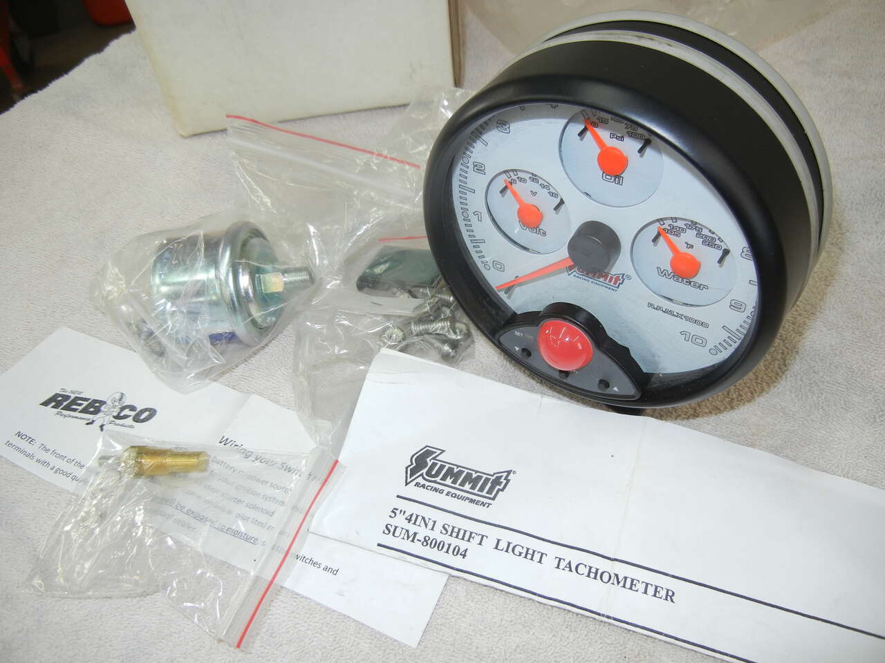 New in the box Summit 4 in 1 Tachometer with Shift Light 5 inch Tach, Oil ,Water, Volts