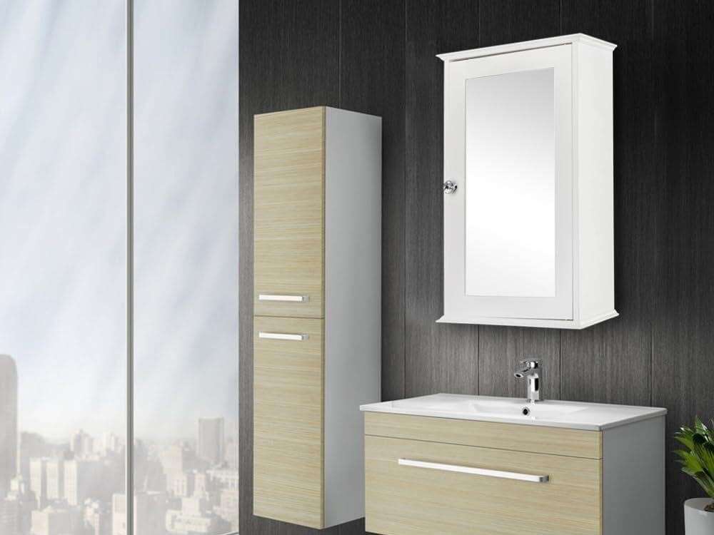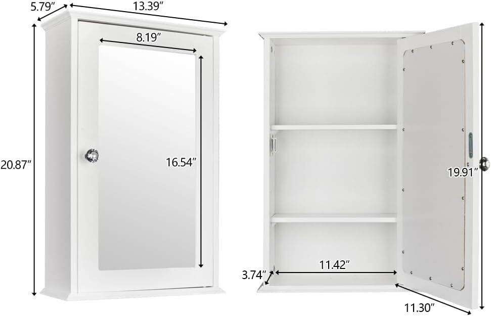 Elegant & Pratical - This cabinet/mirror combo is a good combination of functionality and simple elegance. Modern white finish offers an elegant & comfortable look to your home decor. It works well over a small, single bowl sink. Material Made of smooth, stabel and durable MDF material, with the mirrior door, magnetic lock make it easy to open and close.