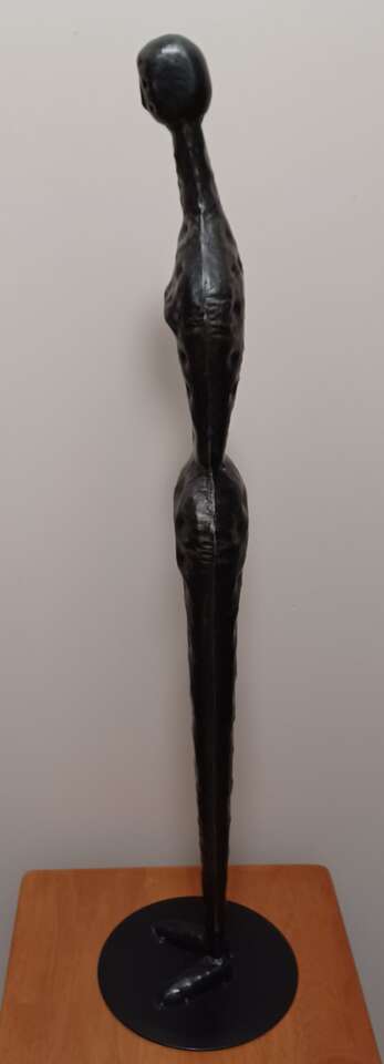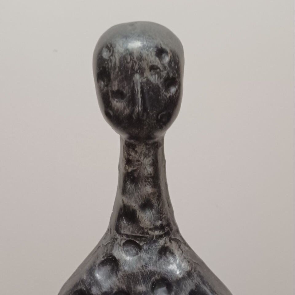 Pier One Vintage Brutalist Abstract Fetish Figural Metal Art Sculpture 34 inch Tall Hammered tin Metal, with satin black lacquered finish Unmarked or signed Great Condition No chipped or rust