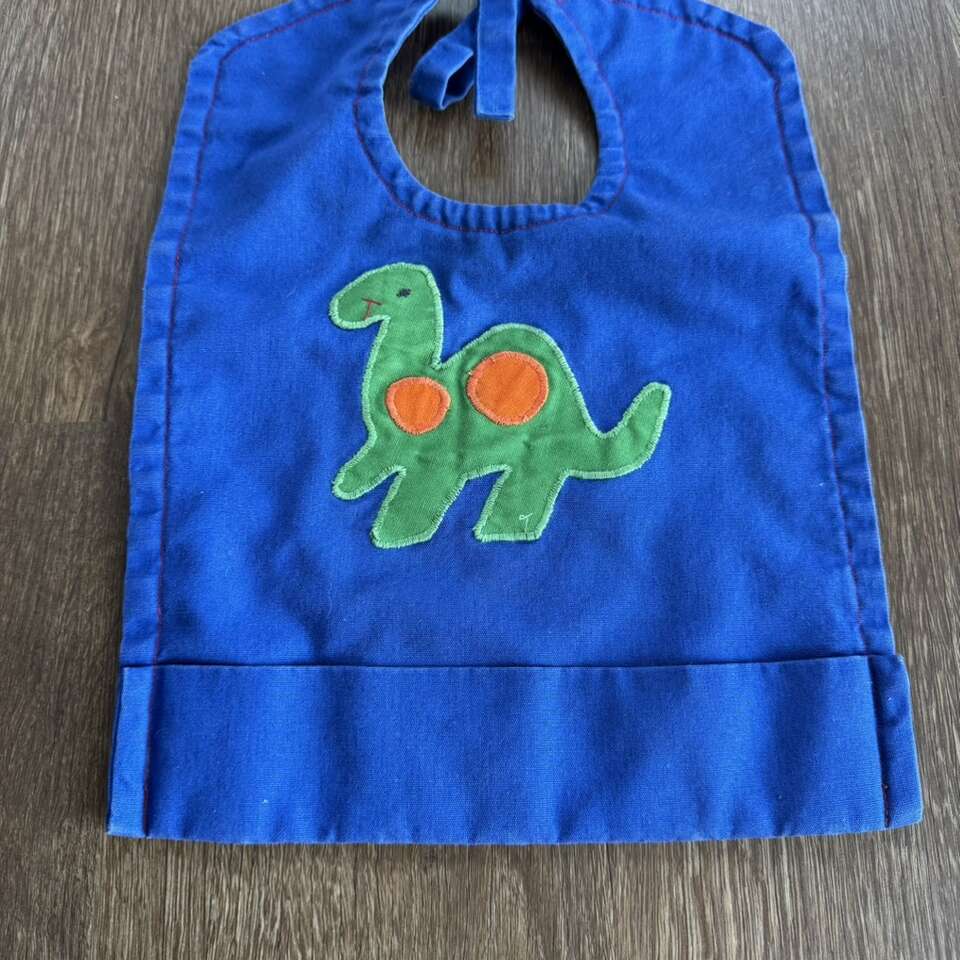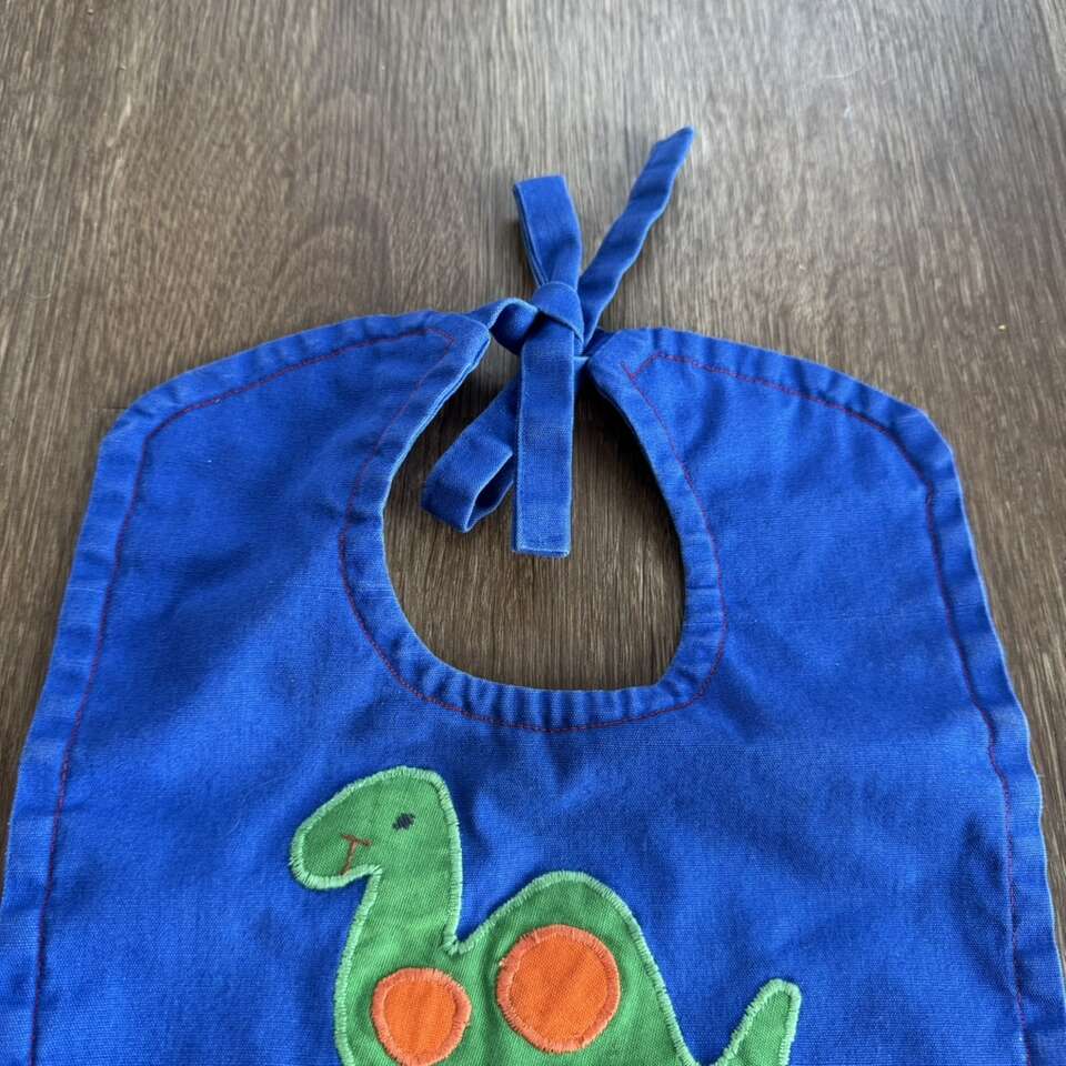Homemade Blue Green Dinosaur Long Neck Baby Bib