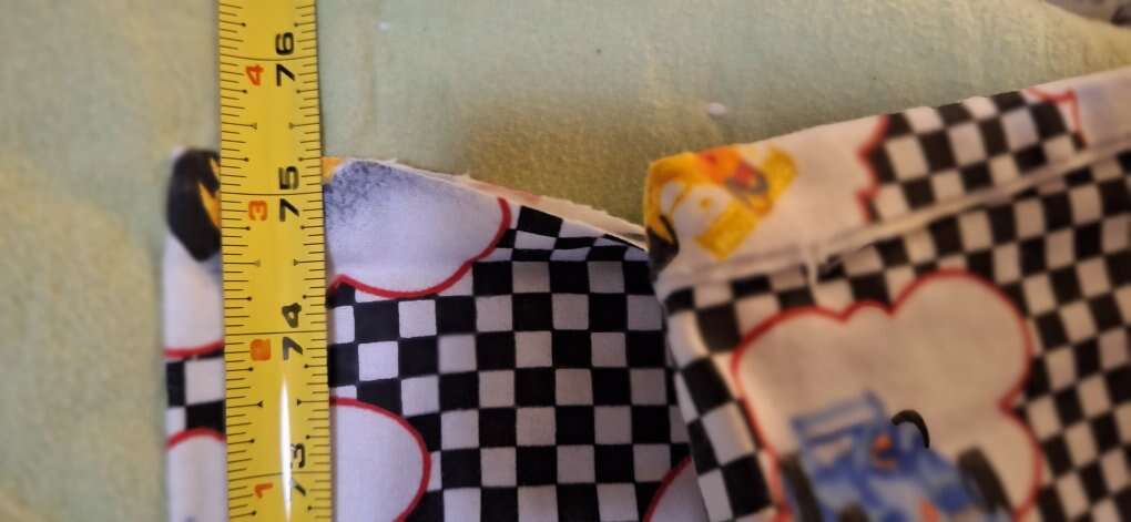 Race car fabric and Gingham check fabric. Originally purchased for a kids blanket that never materialized.