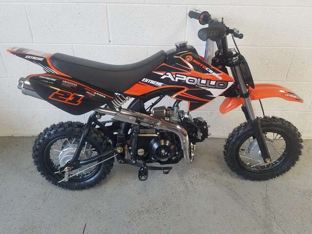 VenmoThis bike is for Sale for $799 OUT OF DOOR PRICE! For sale is this brand new Apollo RFZ -70cc dirt bike. This bike fits riders up to 100 lbs. Great for youth riders. The seat height is 25 inches. The front and rear wheels are both 10 inches. This bike has a 4-stroke engine with a kick start and a 4-speed transmission with all-down gears. The bike also comes with training wheels. Visit Apolloatv.com for all specs. Phone number-385-977-8294 DL# 8357