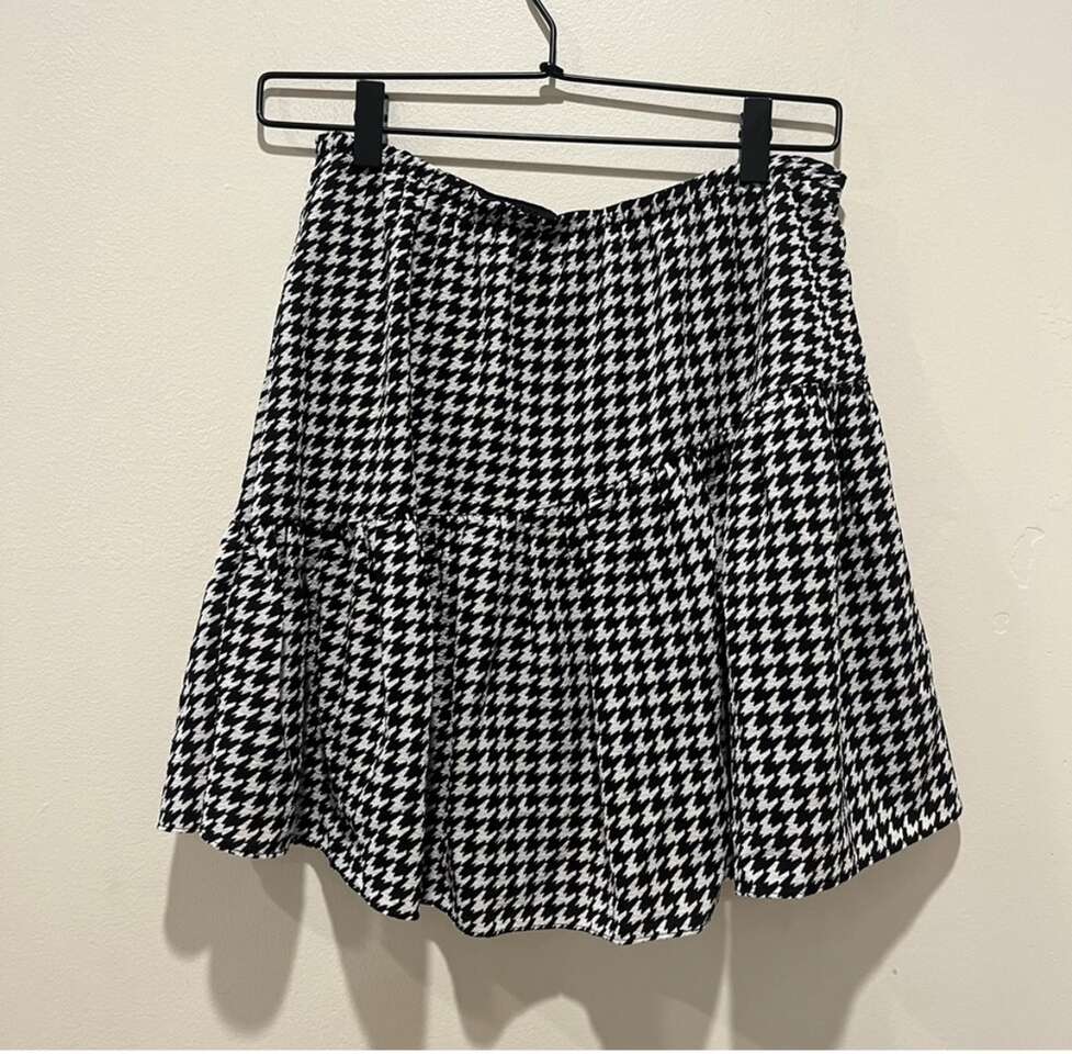 Aqua Brand Black and White Geometric Design Pull On Mini Skirt - Women’s Size Large - double layered with flowy bottom - pre-owned, good condition (main sign of wear is on the inner tag). C004