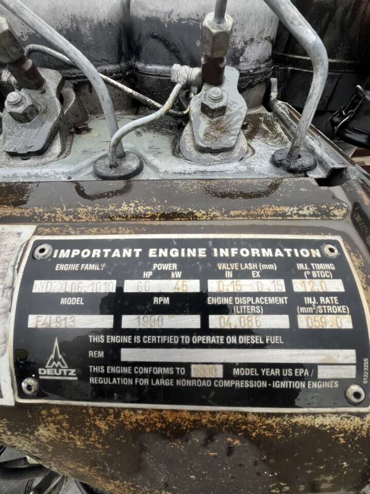 Has a F4L913 dutez diesel engine. Runs good. Has fuel tank built in the skid it’s on. Hrs on engine 12558. I have no records on it.