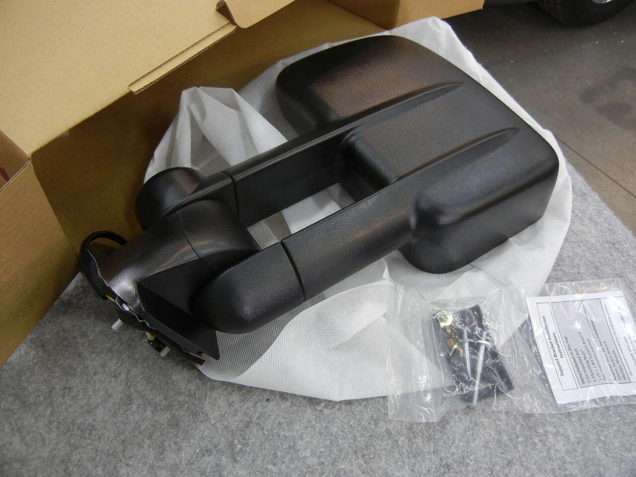 Left and Right Dual Arm Texture Black with Tow Mirror Support brackets Electric adjustment Mirrors type Meets OEM and DOT standards Manual folding and extending NEW Trail Ridge Mirrors TR00008 still in the box with parts and instructions Fits 1994 -2000 multi GM vehicles