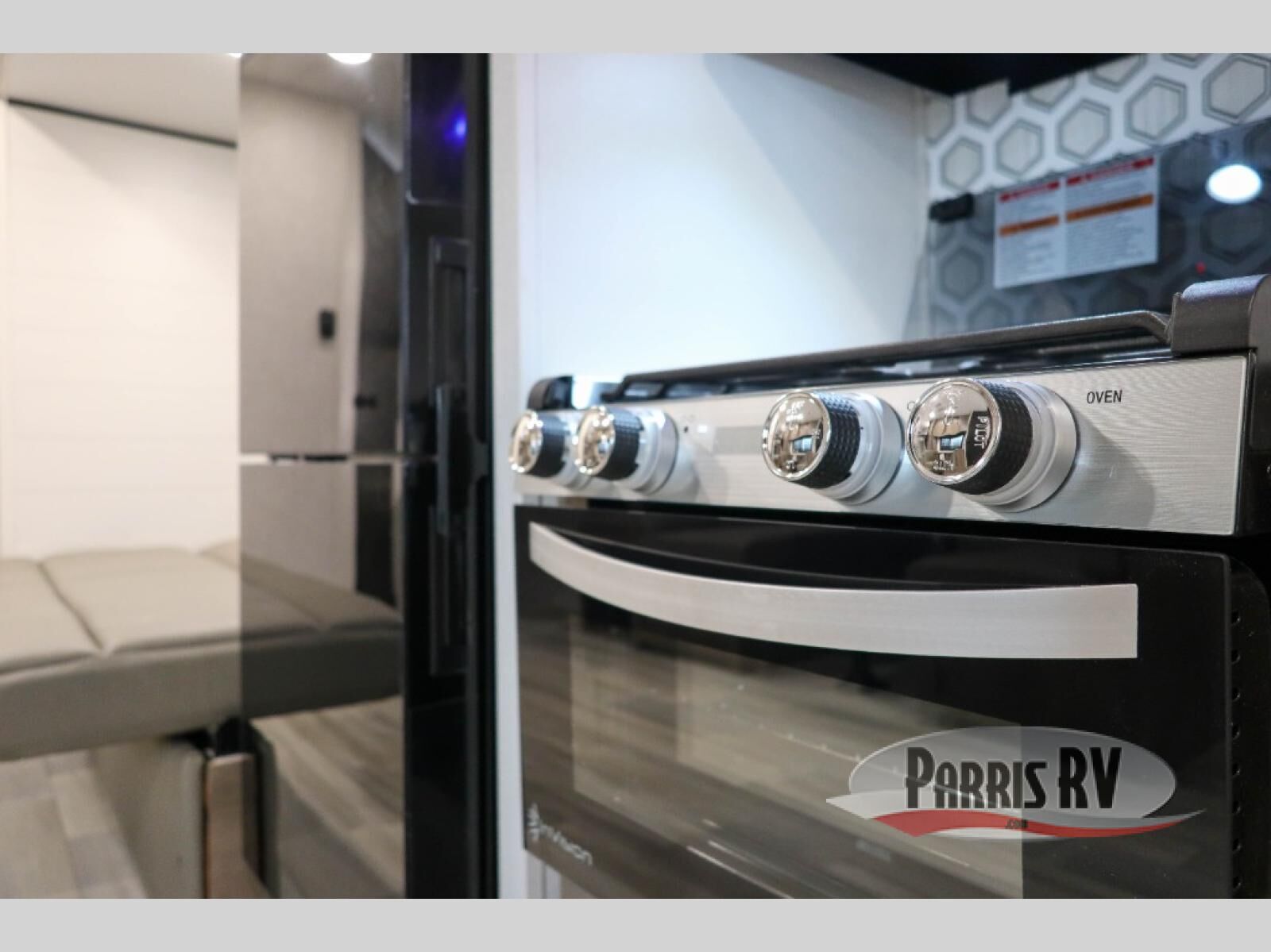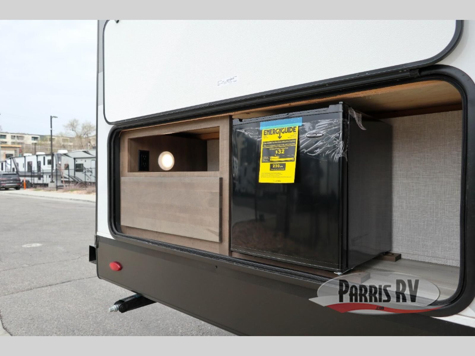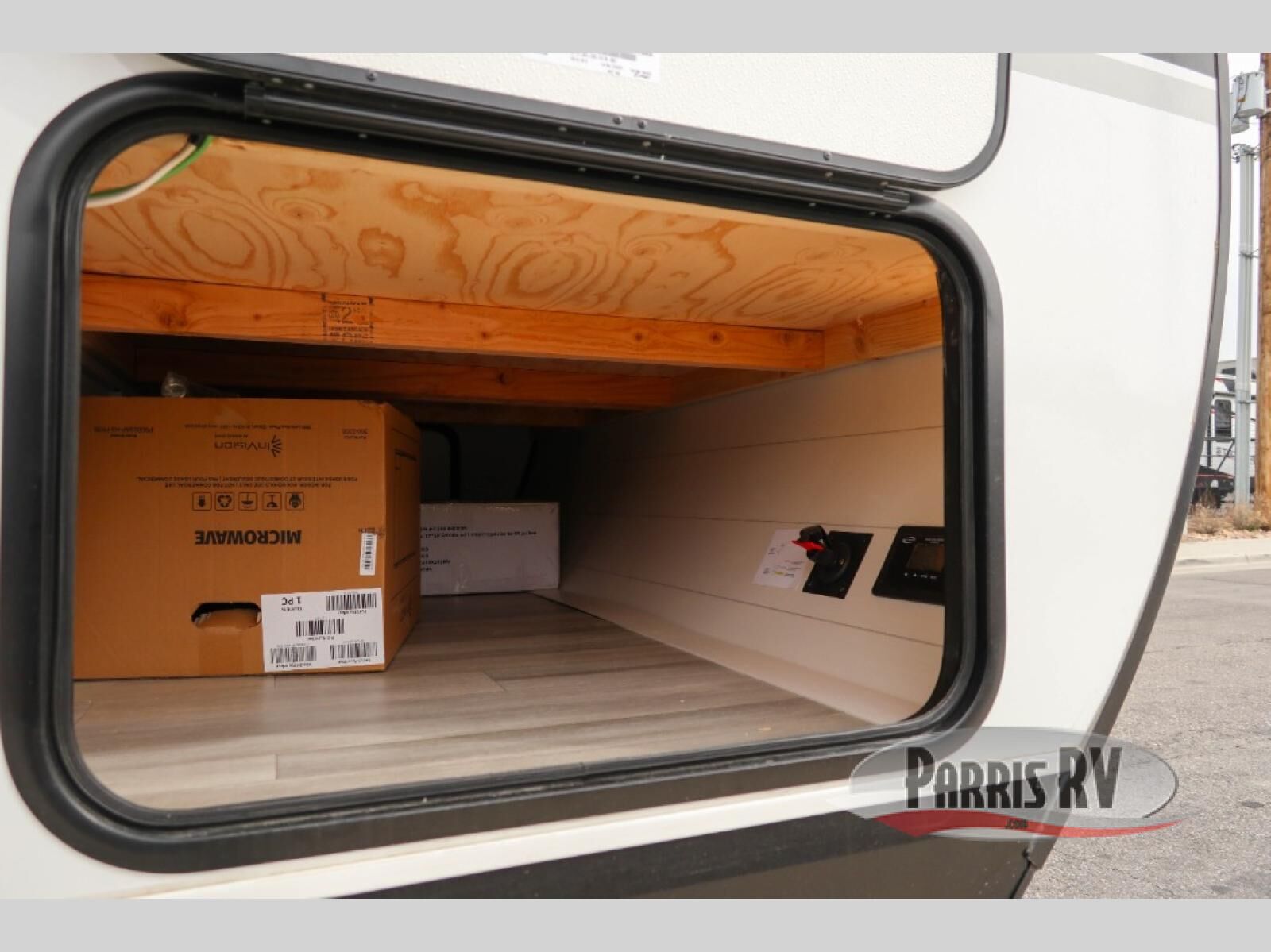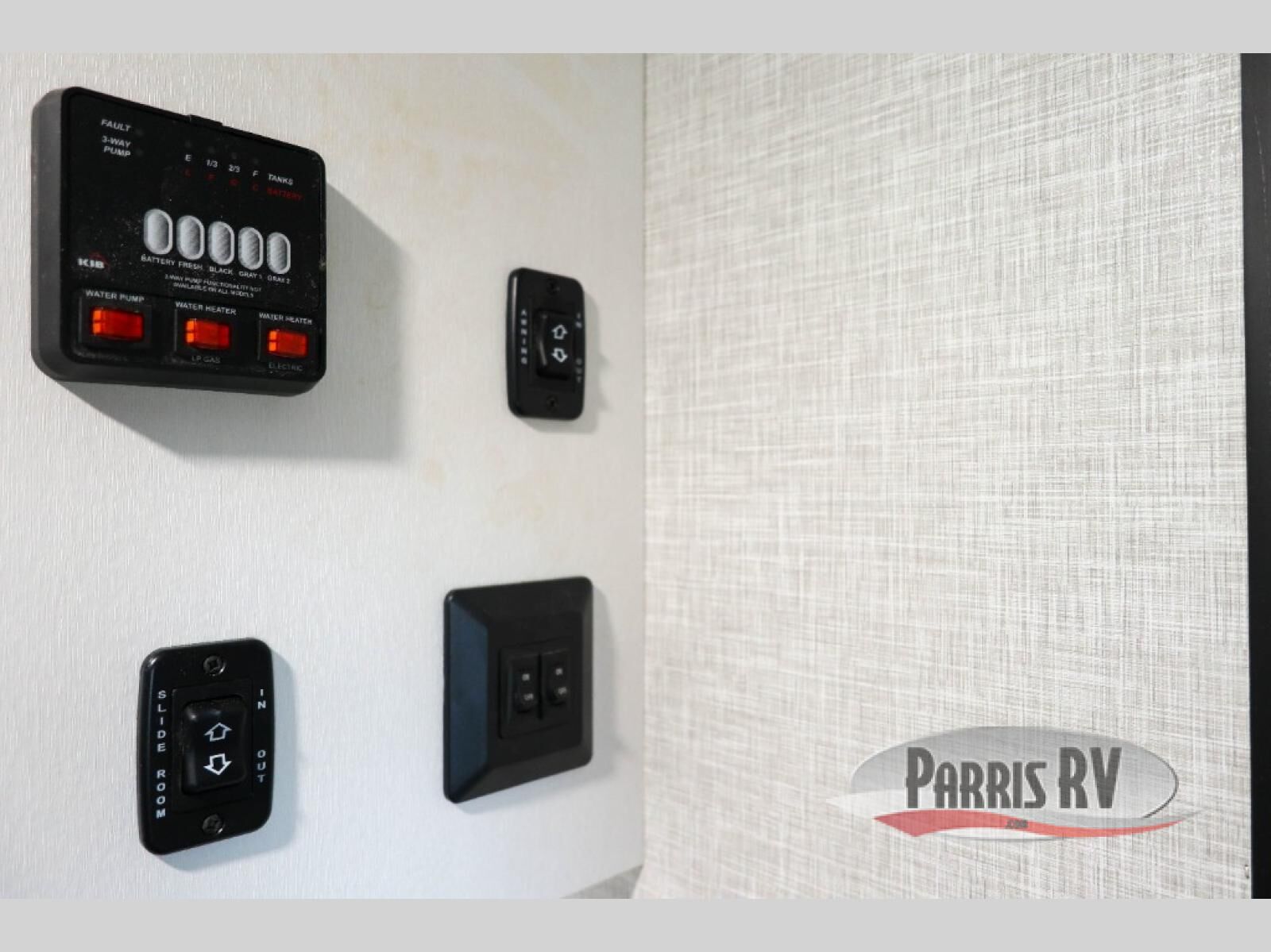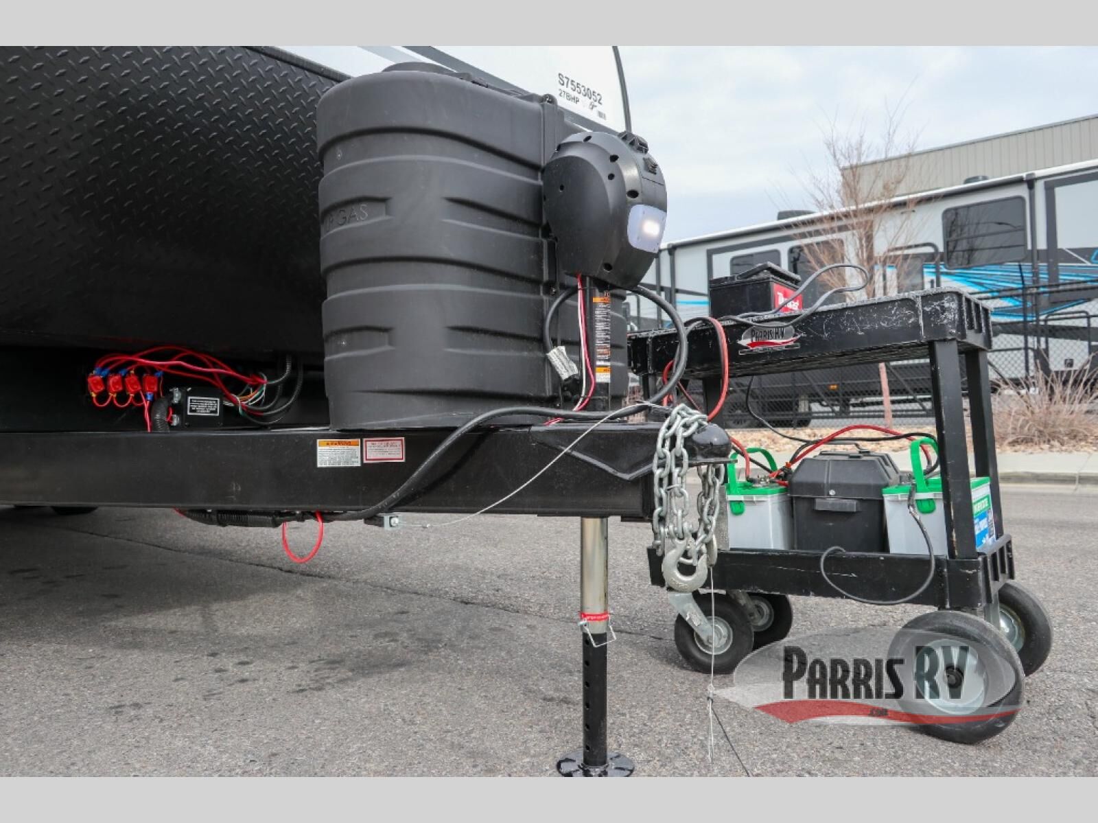 This dual-axle travel trailer can sleep eight people each night, so invite your family or friends along. You will enjoy the private bedroom up front with dual wardrobes to keep your clothes tidy. While the chef of your group is preparing lunch on the three burner cooktop, everyone else can visit on the jack-knife sofa or play a game at the booth dinette. You will also find an 18' power awning with LED lights outdoors which is where you may usually find everyone. The walk-in pantry and additional storage beside the pantry will let you keep snacks, paper goods, and more fully stocked. And the private bathroom is right next to the double-size bunks for added convenience.