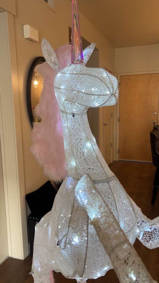 Honestly, I absolutely love this thing, I’ve had it for a long time, and I’ve kept it in pristine condition. I just don’t have anywhere to store it, and could really use the extra money right now. I will not be accepting any offer(s) for any lower than what the posted price is, so please no bartering/no offers lower than what’s posted. Please. When I bought this a couple years ago, I paid $100 for it from Home Depot. But a bonus for you is the matching pink platform base I custom made for it. It makes it far more stable/secure than just the original white wire base it came with. It looks beautiful with the wings, but you can also take the wings off and just have a light-up unicorn that looks just as cool/takes up slightly less space. It’ll be hard for me to let this prized possession go lol. Truly. But I will if there’s someone out there that will buy it for the posted price, and love/enjoy it just as much as I have. So please, I will ask again, -no bartering -no lower prices than what’s posted Thank you