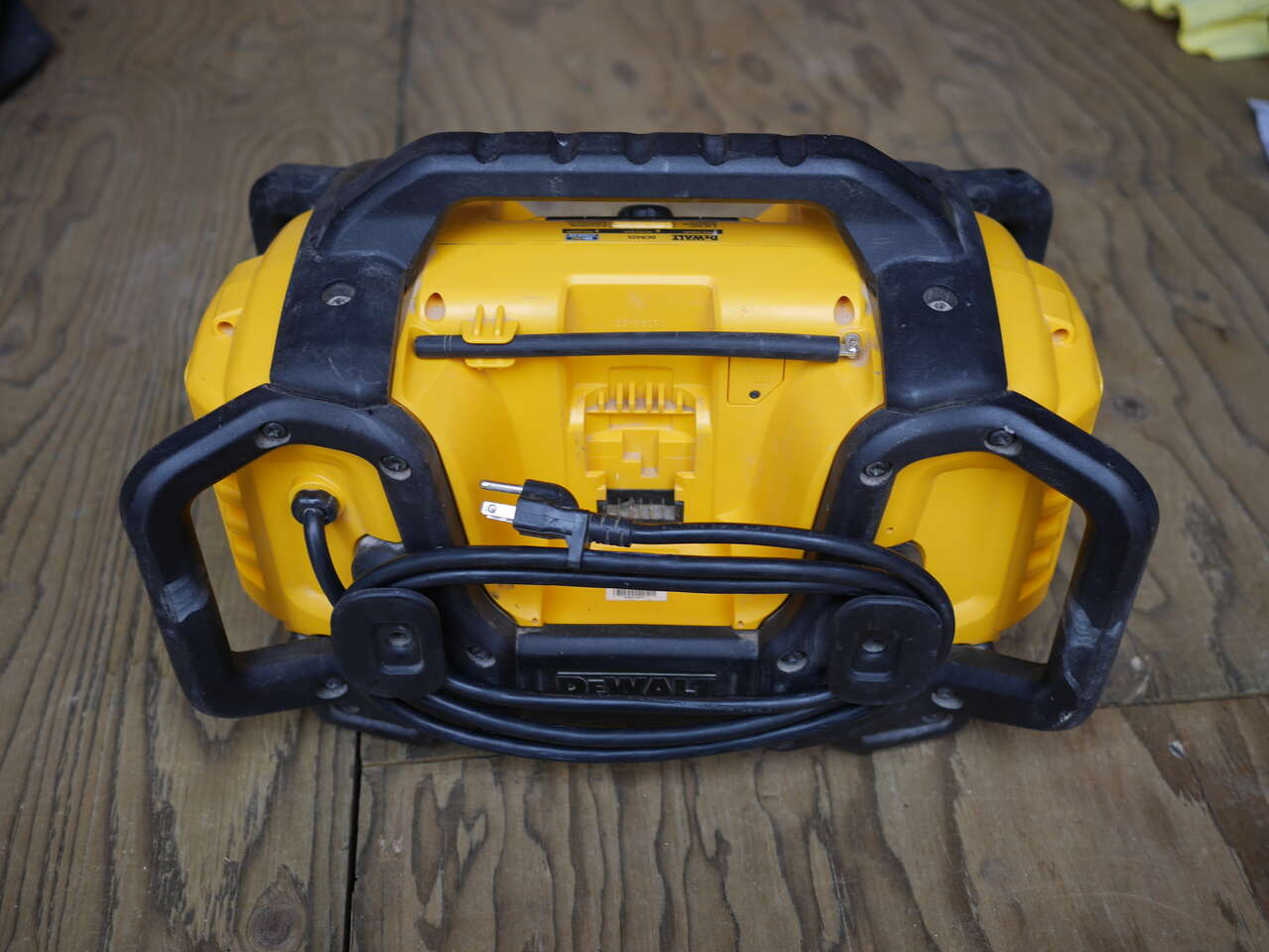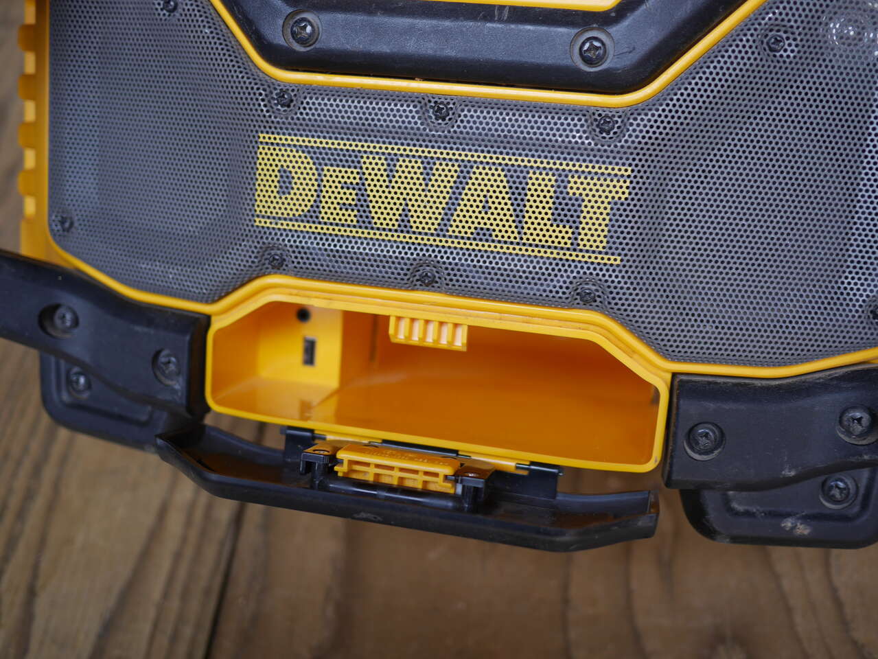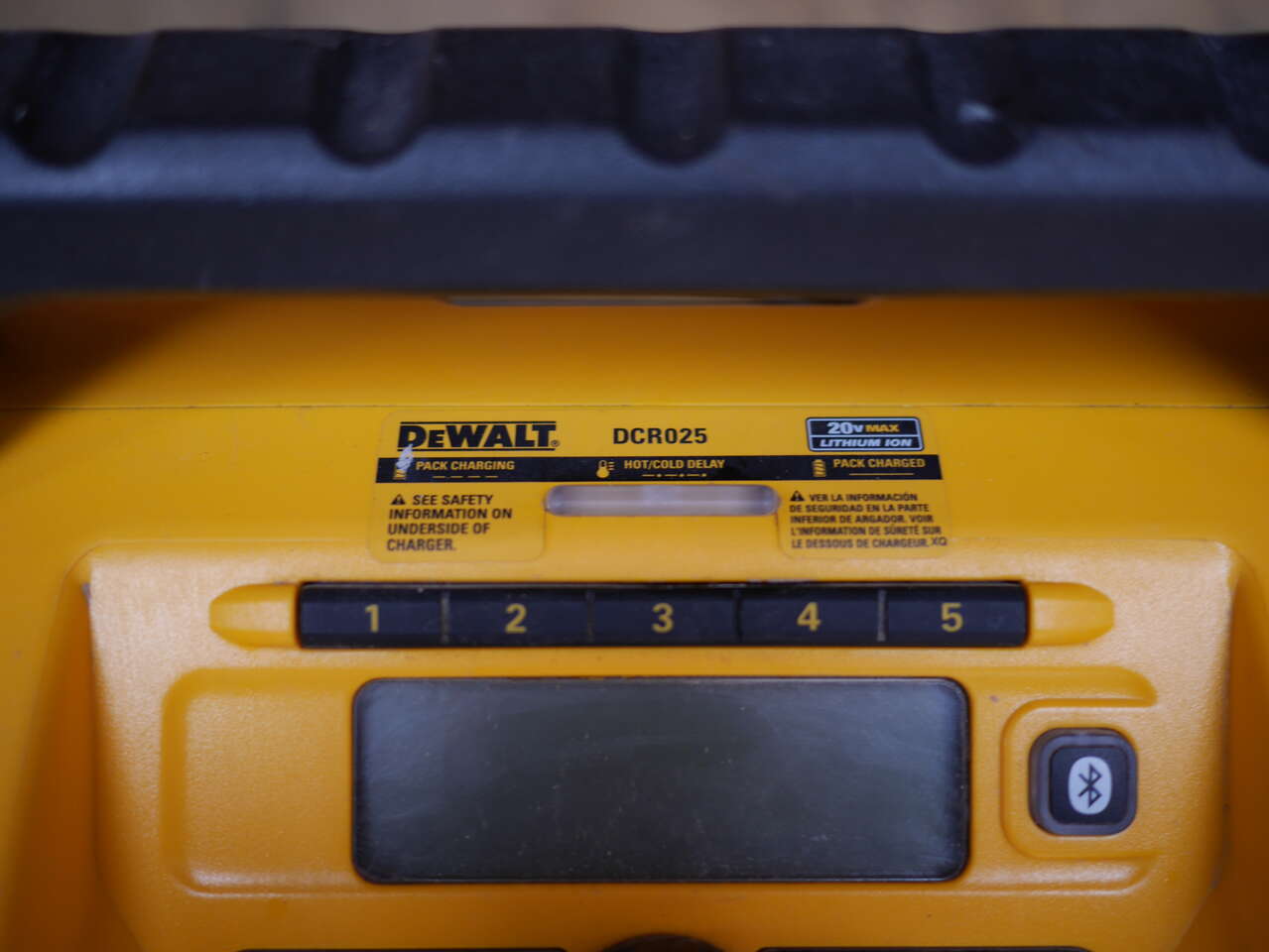 Venmo1 Battery now included!! This speaker is in great used condition! You can charge your batteries with it or run it off of your Dewalt batteries or a standard socket. Dewalt DCR025. Charge your 12V MAX*, 20V MAX*, and FLEXVOLT® 20V/60V MAX* batteries with this versatile Jobsite Radio Charger. BLUETOOTH® capabilities allow this radio to be controlled from your device while delivering clear and rich sound at all volume levels. Featuring auxiliary and 2.1 AMP USB charging ports, this durable radio can be powered with a 20V MAX*, and FLEXVOLT® 20V/60V MAX* battery or an AC Power Cord. It charges the battery when plugged in, and runs off of battery power when unplugged.