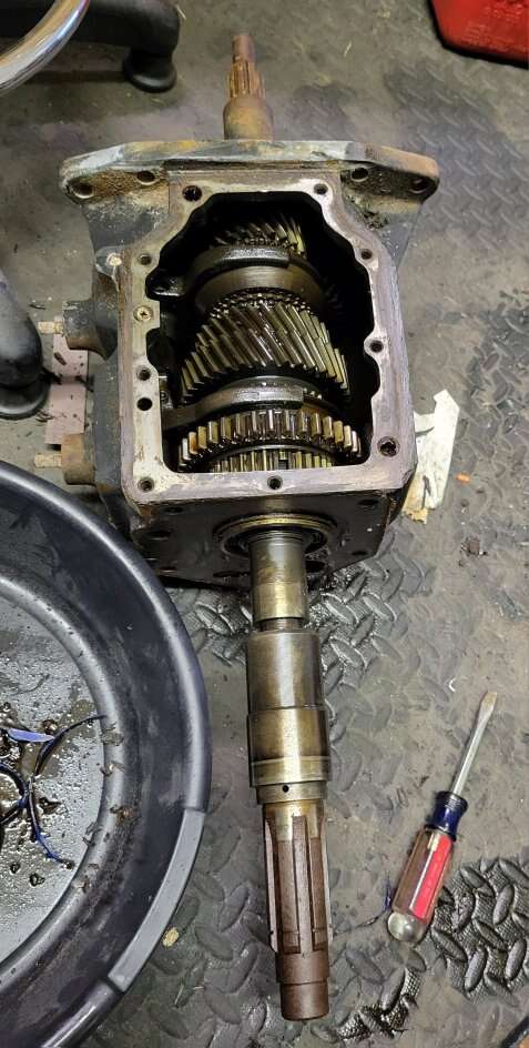 Everything internal looks great and it shifts freely. Tail shaft bearing was frozen so I removed it and will include it with the transmission.