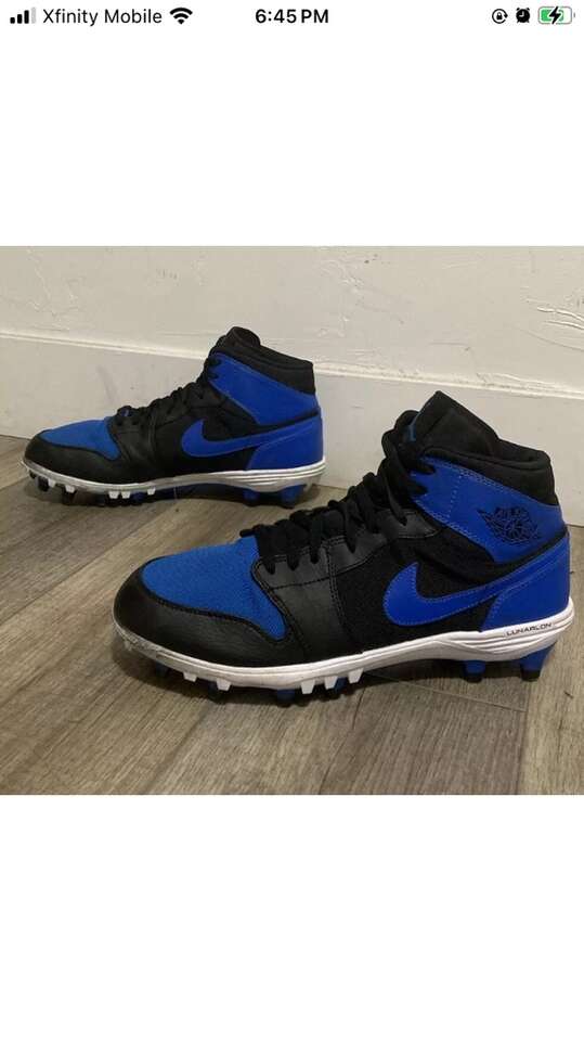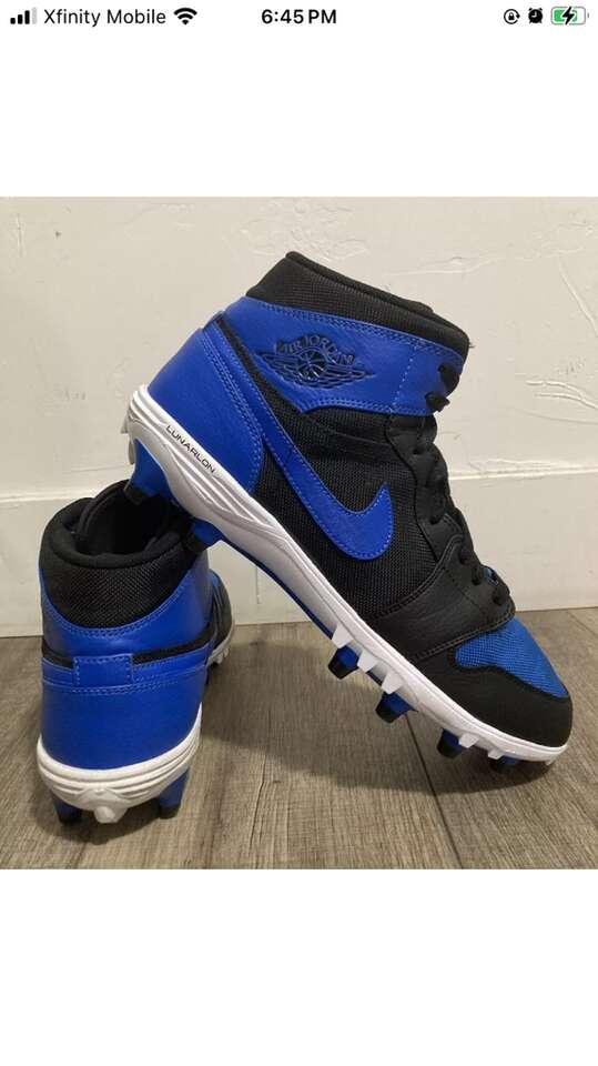 AiR JORDAN 1 Retro TD Mid football cleats color royal blue/black men’s size 11 JORDAN 1 Retro TD #AR5604-041 football cleats pre-owned without box in good condition