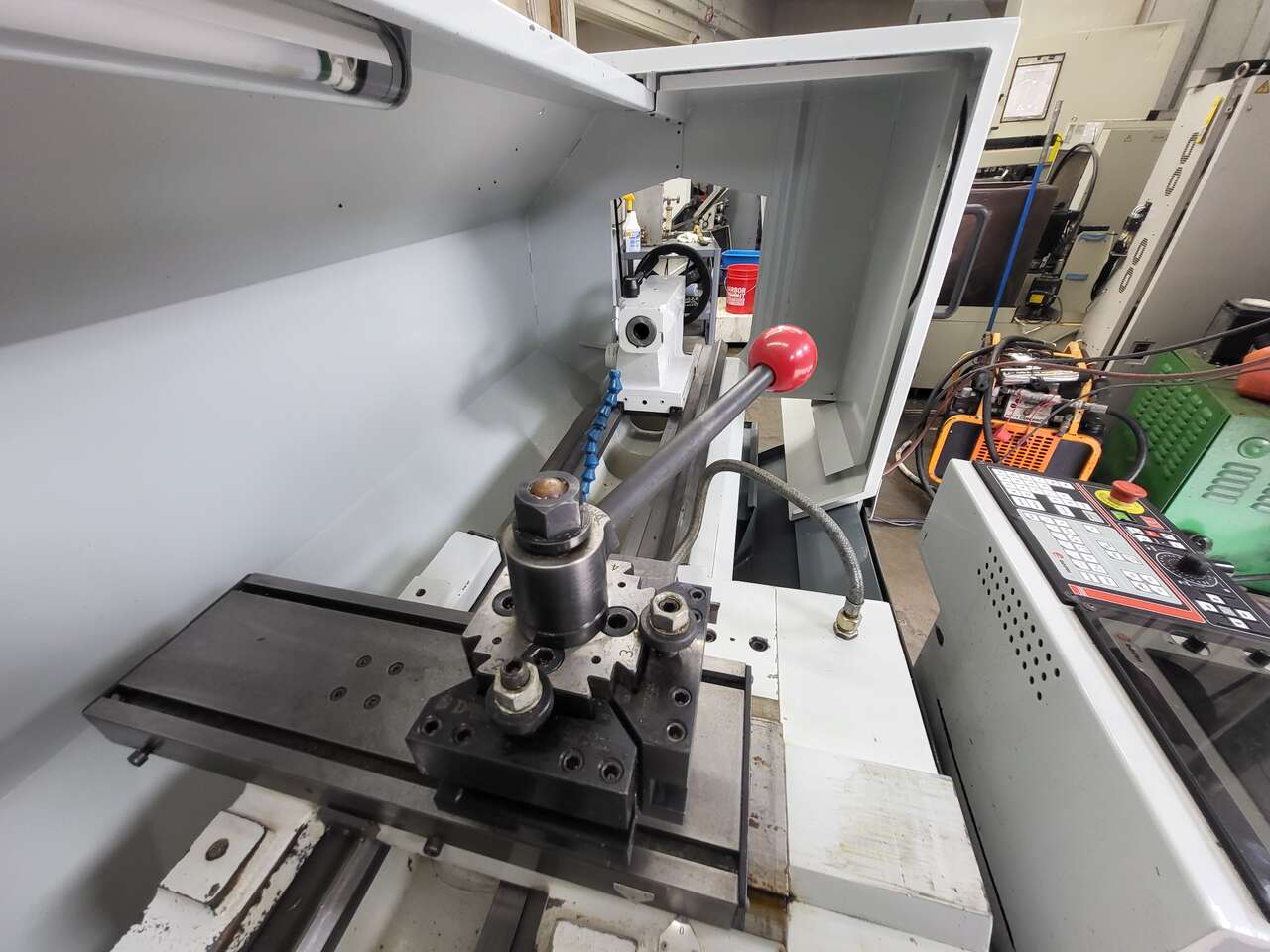 This high-quality CNC lathe has a wide range of capacities and is versatile in size, making it suitable for various applications. It has full door coverage, a four-position tool post, through-tool cooling, and a tail stop. Several toolholders and a 3 jaw chuck included.The machine has been well-maintained and is in good working condition. Don't miss this opportunity to add a reliable and efficient CNC lathe to your workshop.