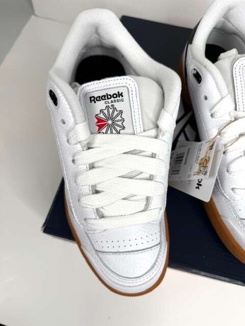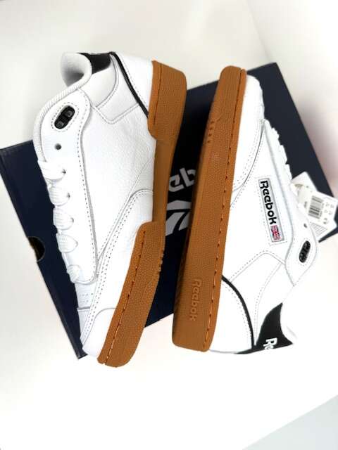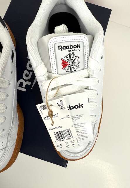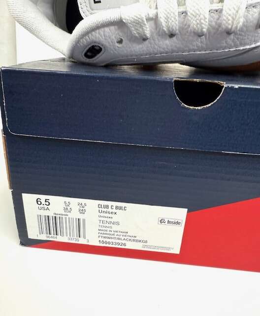 VenmoClassic Reebok leather Club C Bulc tennis shoes with gum rubber soles. The Bulc features wider shoe laces, and an extra-stuffed tongue. Full grain tumbled leather upper with suede heel tab. The tongue label opens at the top to create a pocket. Textile lining Gum rubber midsole and outsole Size 6.5 Unisex New in box