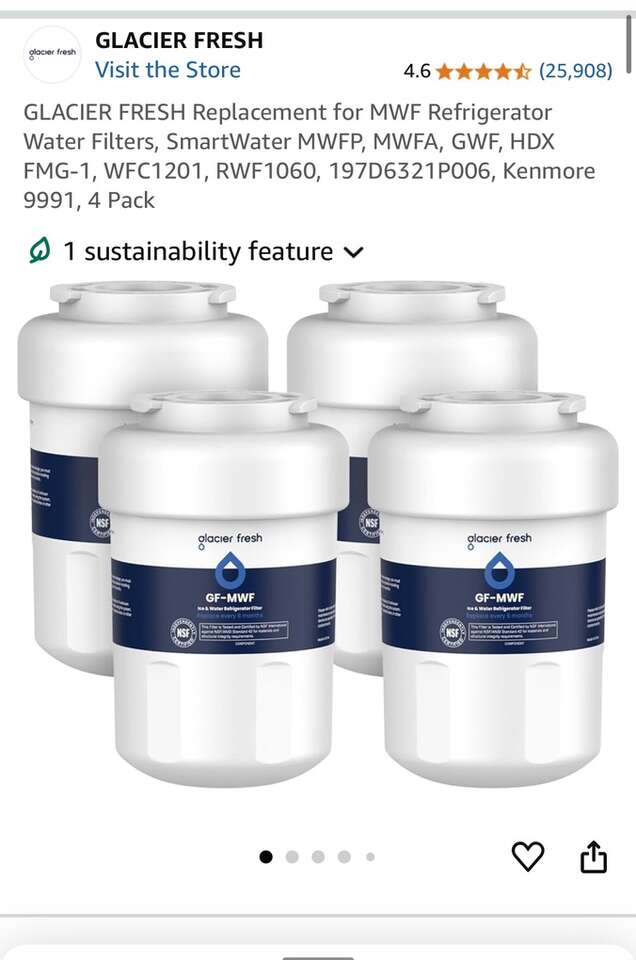 PayPalI have 3 brand new Glacier Fresh GF-MWF refrigerator water filters. They can be a replacement for MWF refrigerator water filters, SmartWater MWFP, MWFA, GWF, HDX, FMG-1, WFC1201, RWF1060, 197D6321P006, and Kenmore 9991. $9 for one or 3 for $25 There is nothing wrong with them, they just don’t fit our new refrigerator. Thanks for looking! Check out my other listings!