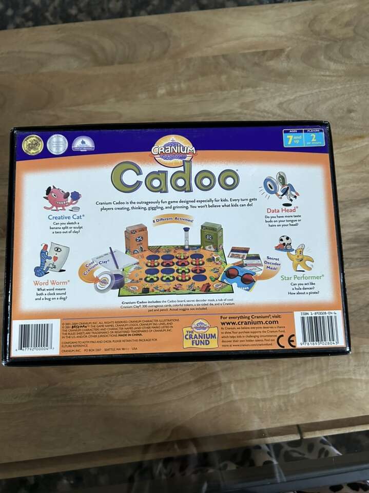 VenmoLike new Cadoo by Cranium board game. In like new condition. Fun family game. All the pieces are accounted for. Need fresh play dough clay soon. Perfect for all ages. Clean smoke free home. Cash or Venmo. Porch pickup from Alpine.