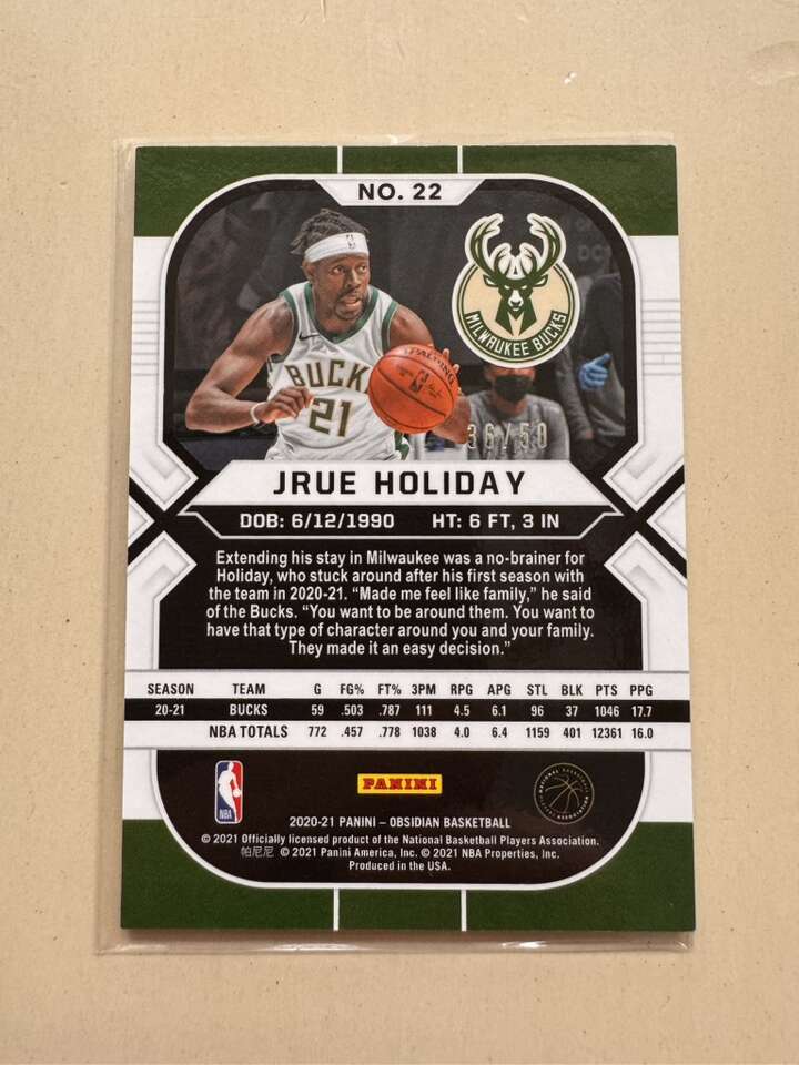 2020-21 Obsidian Basketball Jrue Holiday #22 Orange Etch Parallel /50 Bucks