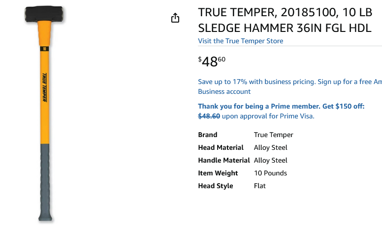 ten pound sledge hammer is in great condition!