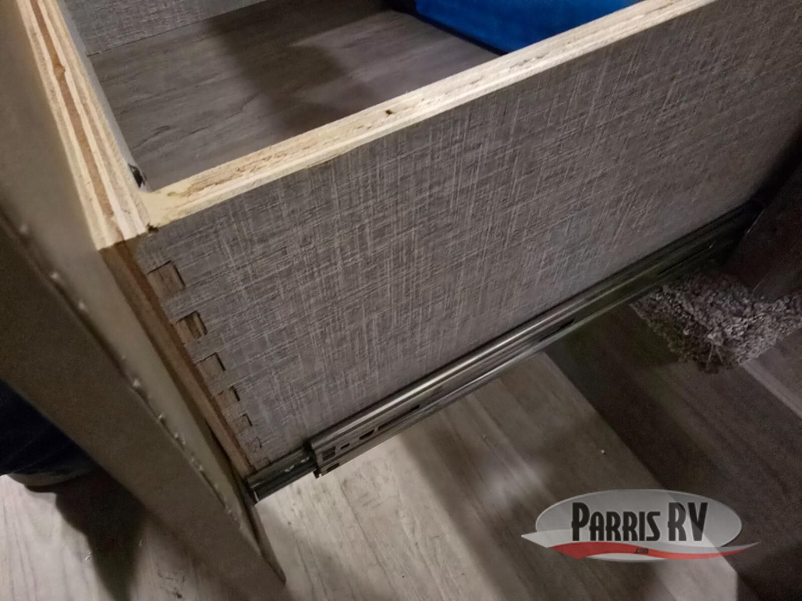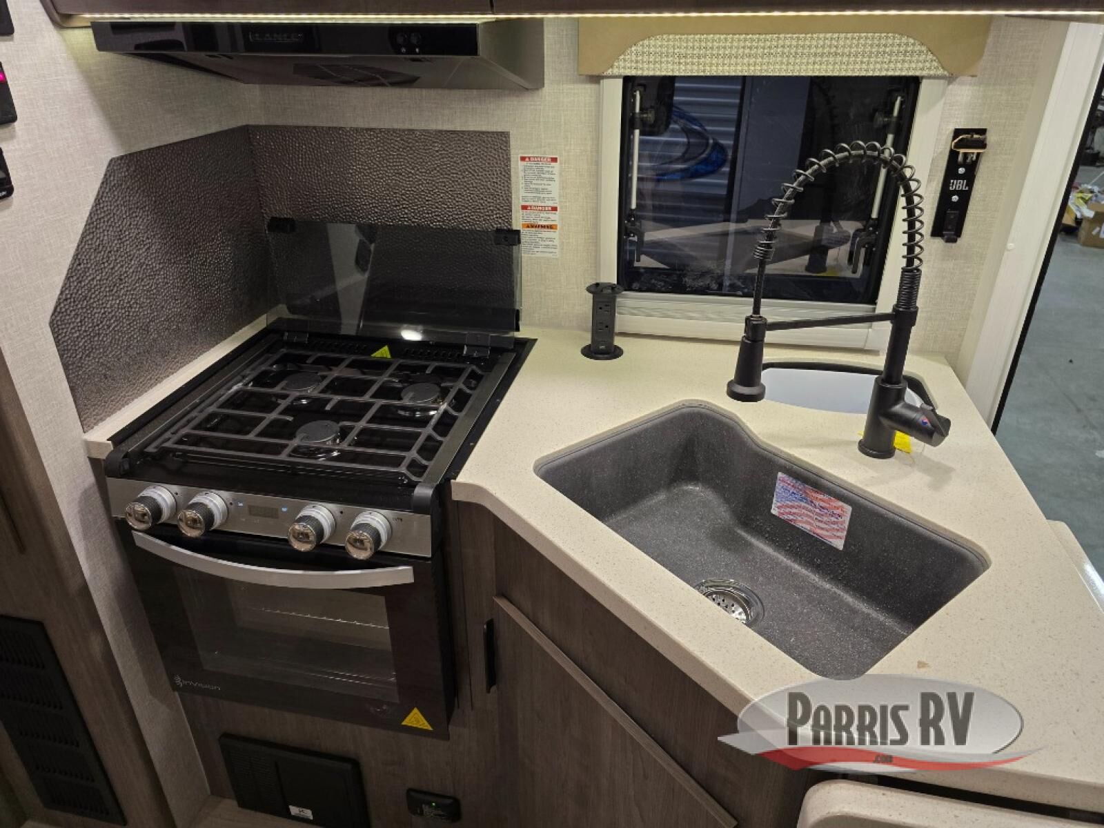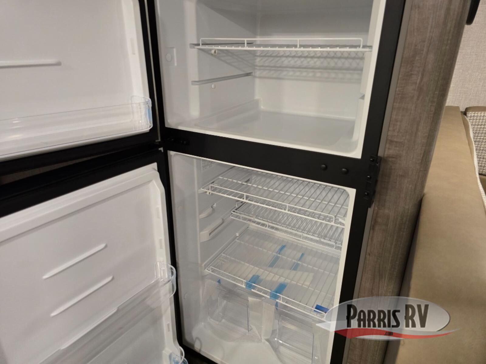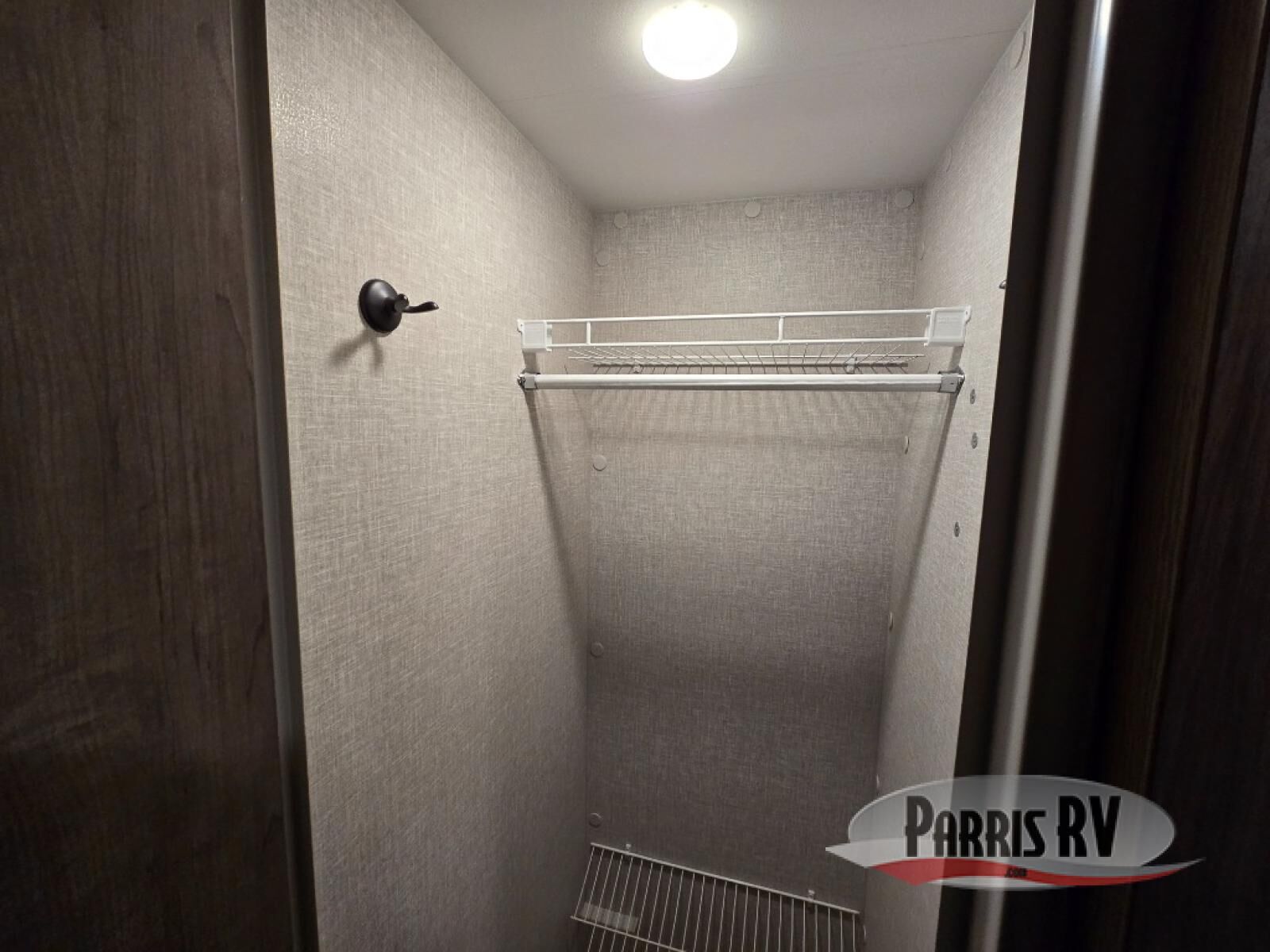 This spacious travel trailer is the perfect companion for all your adventures. The front bedroom includes a deluxe queen innerspring mattress with a pillow top, dual bedroom wardrobes, and a floor-to-ceiling walk-in closet to keep your clothes tidy. The stainless steel three burner cooktop will let you prepare meals each day and the double door refrigerator will keep food fresh. A U-shaped dinette provides a place to dine, play games, and let guests sleep over, and the slide out here gives you more floor space to move about. This model also has a full rear bath with tons of counter space, a large walk-in shower, and more!