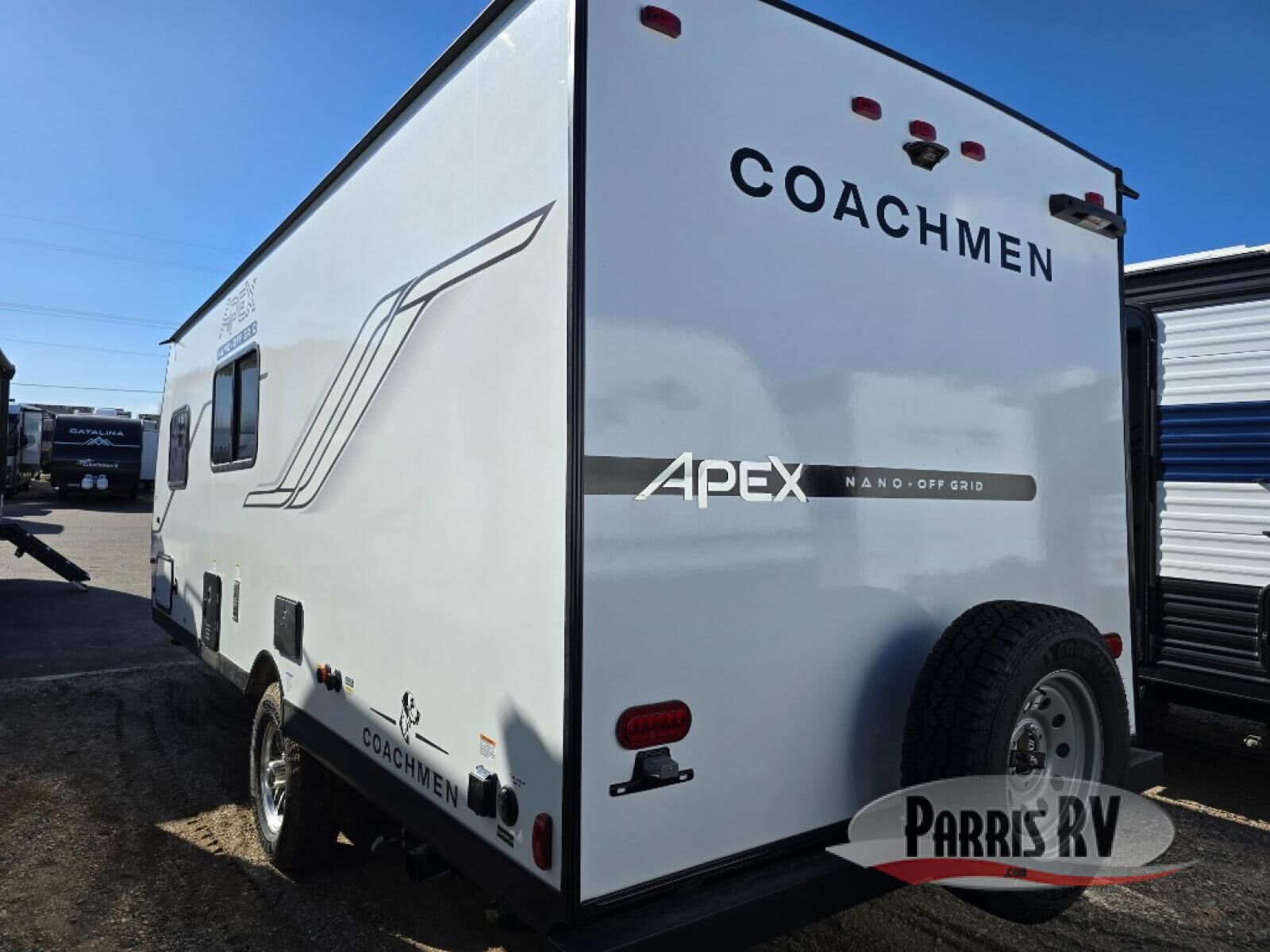 You will find comfort, convenience, and a sturdy construction with each of these Coachmen RV Apex Nano travel trailers! They are held together with an aluma-cage construction, an I-beam chassis, plus vacuum-bonded laminated dual Azdel fiberglass walls for double the protection against the elements. The 200-watt solar panel with a 30 amp control charger is included within the Off-Grid Package, along with two 20 lb. LP tanks, a high velocity power roof vent, plus 12V outlets to keep you powered up. More exterior feature include a hot/cold shower, four stabilizer jacks, a power awning with LED lighting, and magnetic baggage door catches to easily pack and unload your gear. You will love the interior of your Apex Nano with Congoleum residential flooring, one-piece seamless edge countertops, matte black hardware in the galley, and a hand-crafted wood medicine cabinet in the bath.