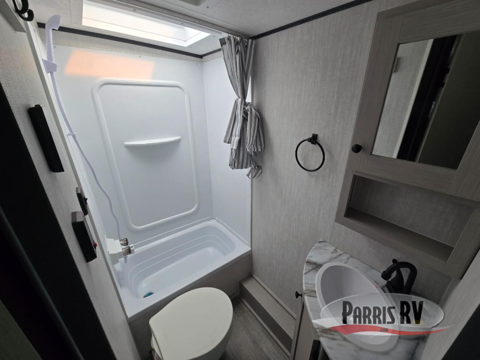 This travel trailer offers versatility with a front fixed bed or optional Murphy bed depending on your needs. There is a rear corner double bed bunk above a lower flip up double bed and a booth dinette that can transform into an extra sleeping space when you're not using it to enjoy a meal or play a card game. Everyone can stay clean with tub/shower in the rear corner bathroom and keep their bellies full with the two burner cooktop and 8 cu. ft. 12V refrigerator. You can even cook outdoors with the exterior camp kitchen while staying protected by the power awning with LED lighting!