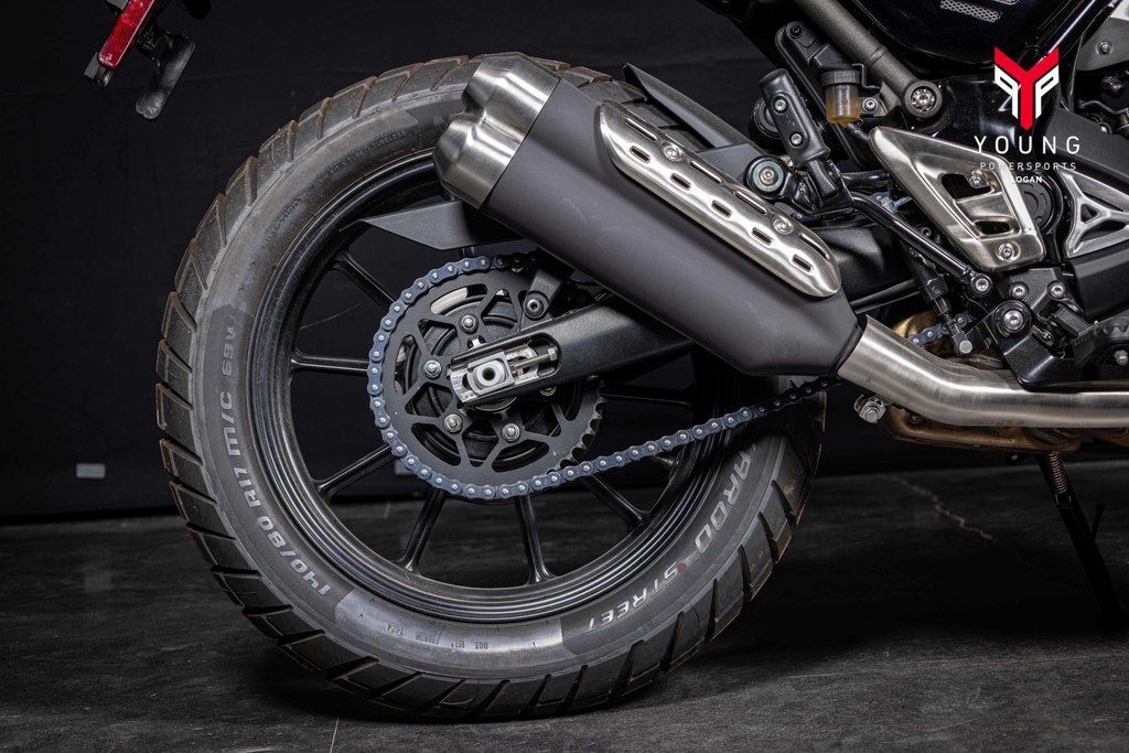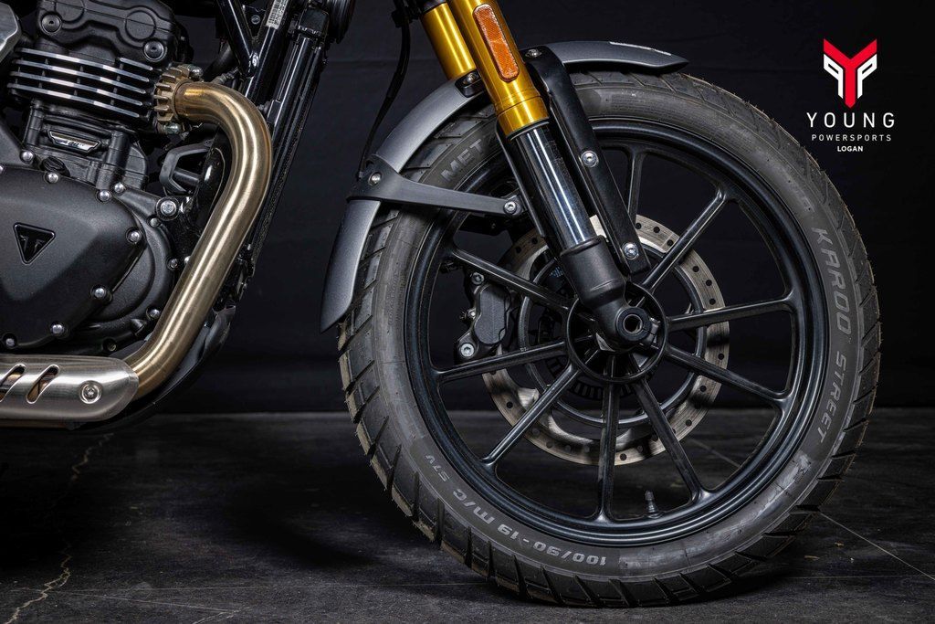 No mater the conditions, the Scrambler-specific, lightweight V-spoke design cast 19-inch front and 17-inch rear aluminum wheels with premium-brand tires provide all-road confidence.