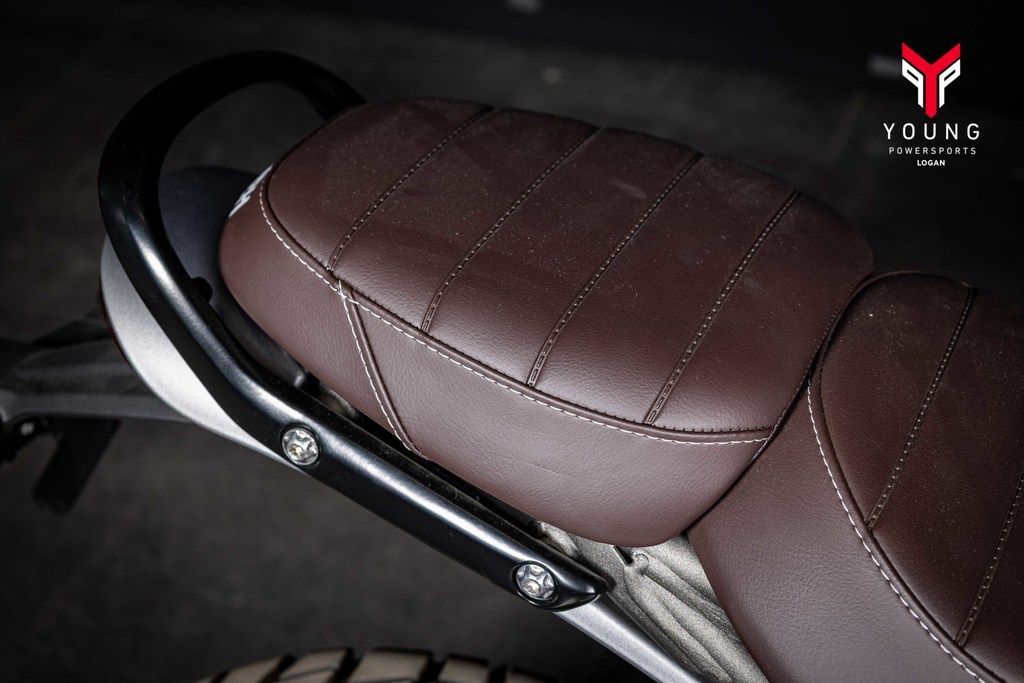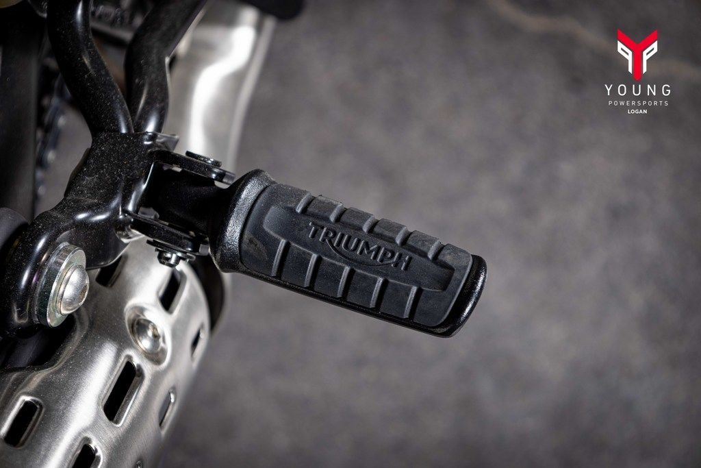 A commanding riding position with wide adjustable handlebars and flat high-grip foot pegs give the Scrambler 400 X commanding road presence and comfort with excellent off-road control.