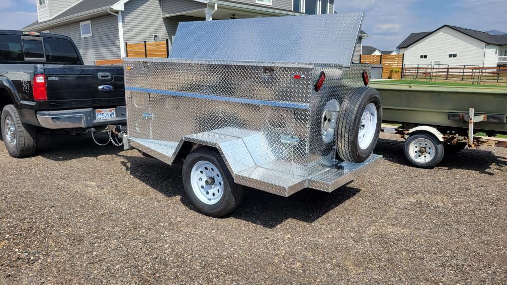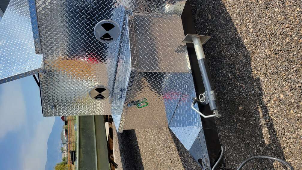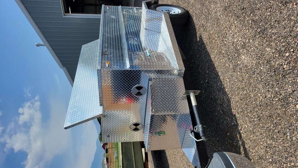 VenmoBrand new 4 hole spacious holes for each dog (46" x 23") top storage compartment front tool box 21 gallon water tank spare tire included 15" tires fully wired sturdy construction and ready to safely transport your pets