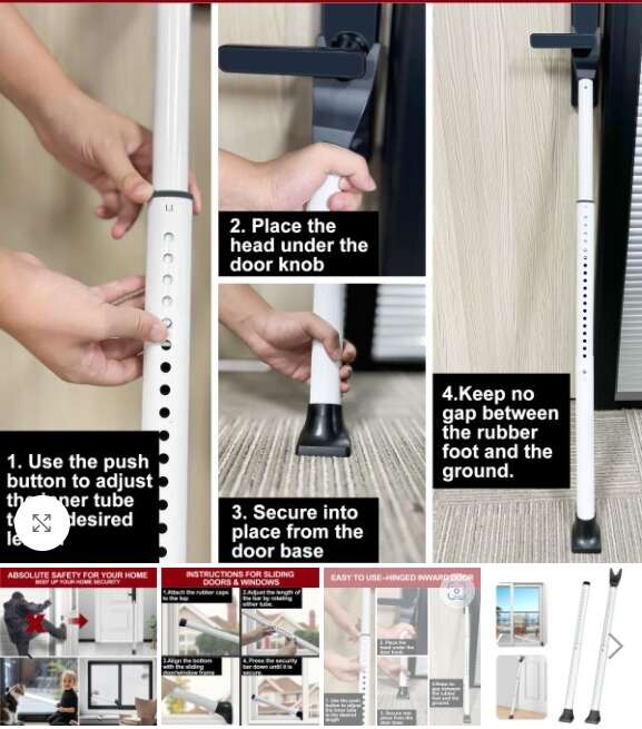 ZelleAceMining Door Security Bar, a versatile and reliable locking device for various doors and windows. It functions as a sliding door security bar, sliding glass door security bar, door stopper security bar, and security bar for front doors to stop doors from being forced open. It’s also a top pick for sliding patio door security, easy to install and adjust, built to withstand strong forces. Protect your property with our sturdy security bars for windows and doors. Also great for stopping a motel or hotel door from being forced open by placing it against the door knob. Even someone with a key can not get in, and easy to carry.