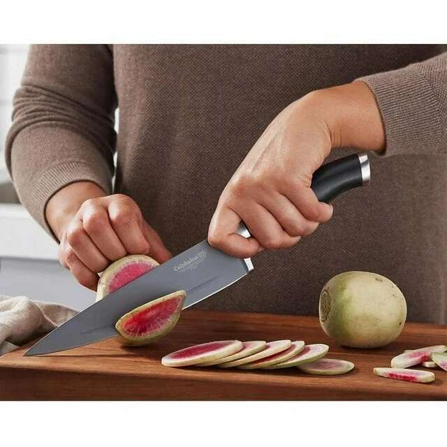 We have one Calphalon Contemporary SharpIN 14pc Knife Block Set 1521585 #84583 available. This knife block set has been used and comes out of box. This set is missing one knife, so we have discounted it from our regular low price of $108.00 to $100.00 to reflect this issue.