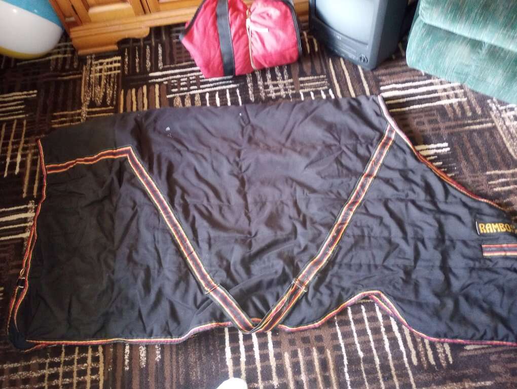 three horse blanket for sale I think two 72 inches red and black and one is 76 inches is blue $80 each