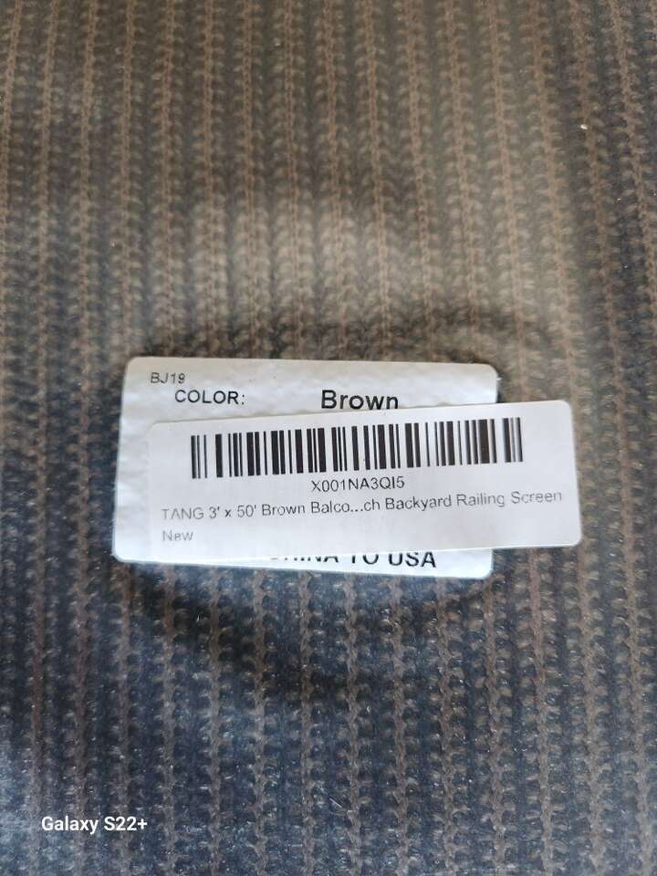 new brown and black privacy screen three feet tall by fifty feet wide. with zip ties and instructions.