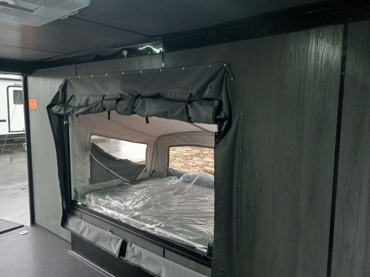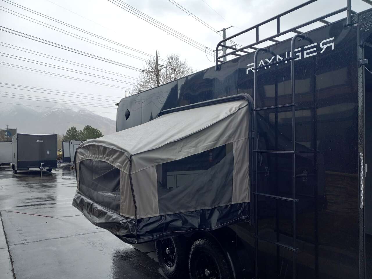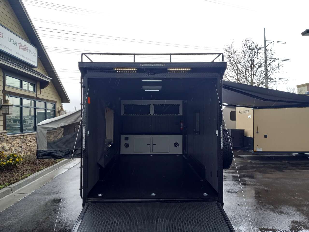 LIMITED TIME $240 A MONTH WITH ZERO DOWN WITH OUR SPECIAL LOCAL CREDIT UNION PARTNER!!! NO PRE-PAYMENT PENALTIES!!! NEW 7.5 WIDE MODEL!!! FITS ANY STOCK SIDE BY SIDE UTV!!! RAYNGER PREMIUM OFF ROAD TOY HAULER CAMPER!!! 18 INCH GROUND CLEARANCE!!! OFF ROAD TIRES!!! FULLY INSULATED!!! HEATING AND A/C!!! WET SOUND STEREO!!! FOLD OUT/POP OUT TENT WITH MATTRESS!!! Ventilated Locking Generator Box!!! UPGRADED TORSION AXLES!!! 14.2 Foot Long Garage Space!!! And Much MUCH MORE!!! Check out our Specs!!! Also available in 18 foot models. 18 Foot Models can have 3 Fold Out Beds/Pop Out Tents. 16 Foot and 18 Foot Models will fit ANY stock 4 Seater Side by Side • 6” I Beam Frame• Flat Top Design• Flat Front Design• Wall Posts 16” on Center• Cross Members 16” on Center• Roof Bows 16” on Center• Rust Inhibiting Z-Tech Protection on Chassis• Ameraguard on Tongue• Ameraguard on Rear Bumper• Ameraguard Around All Door Openings and Stepwell• Ameraguard Around Edges of Ramp Door• 3500 LB Spring Axles• 2-5/16” Coupler• One-Piece Aluminum Roof• ST235/75R15 Aluminum Wheels with Chrome Center Caps• 2000# Ramp Door with Eberhard Latch• 30” Tempered Glass RV Door with Screen Door• .030 Exterior Metal with Screwless Sides• 24” Black Stoneguard• 3” Black Bottom Trim• Sand Pad• Black Door Hold• 2.7mm Charcoal Textured Vinyl Ceiling • 9mm Charcoal Textured Vinyl Walls• 3/4” Engineered Wood Floor with Rubber Coin Overlay• (6) 1200 LB Floor D rings Installed with Backer Plates• LED Clearance Lights and Tail Lights• LED Back-up Lights• No Show Wheel Box• Spoiler with Toggle Switch• RV Step• 7’ Interior• (2) 17” Chrome Base Lights with Switch• (1) Black 17” Spot Light with Switch• (1) 30 Amp Panel with Marine Plug• A/C Unit with Heat Strip• (3) Interior Recepts• (1) Exterior Recept• 12V Battery and Charge Line• Prep for Backup Camera• Wet Sounds System• (3) Blue Interior Cabinet Lights• (1) 6’ Section of Flex Lights• Black ATP Rear Header and Hoop• Black ATP Fenders• Insulated Walls & Ceiling• Base Cabinets• Overhead Cabinets with Netting Over Compartments• Pop Out Tent• Black ATP Storage/Generator Box Mounted On Tongue