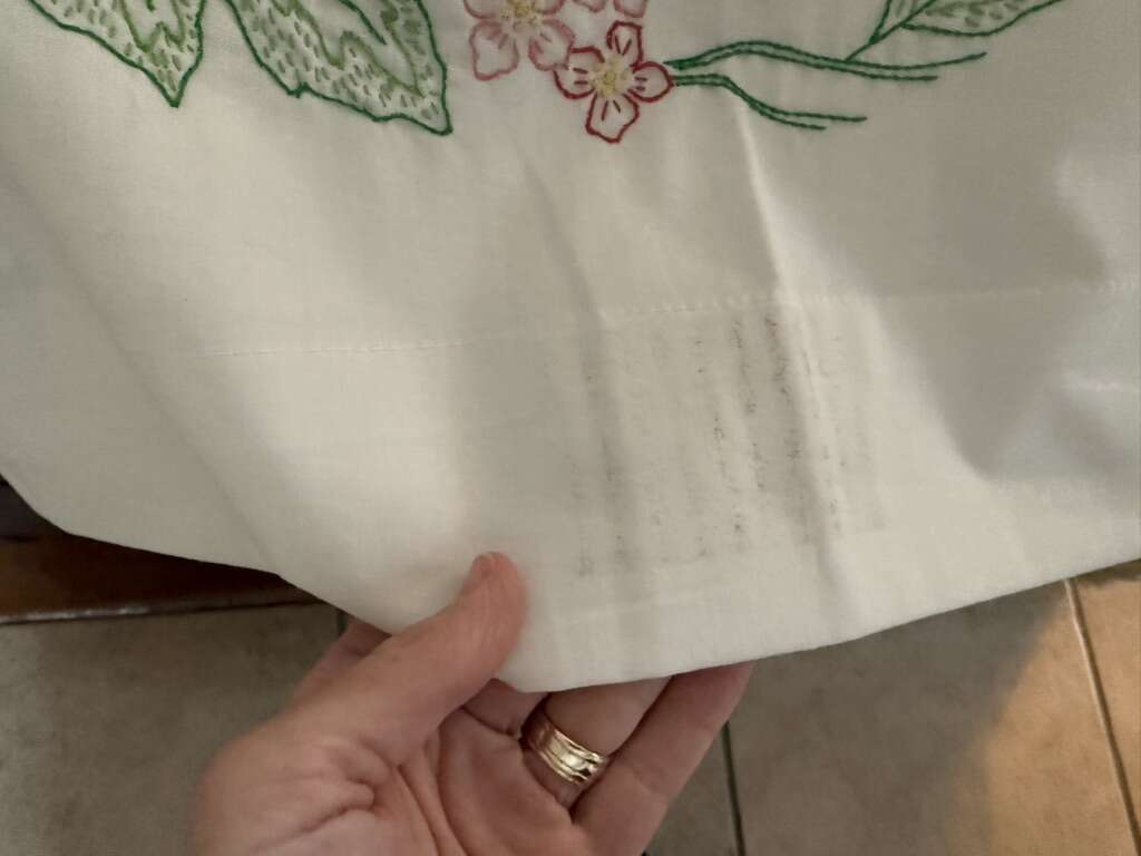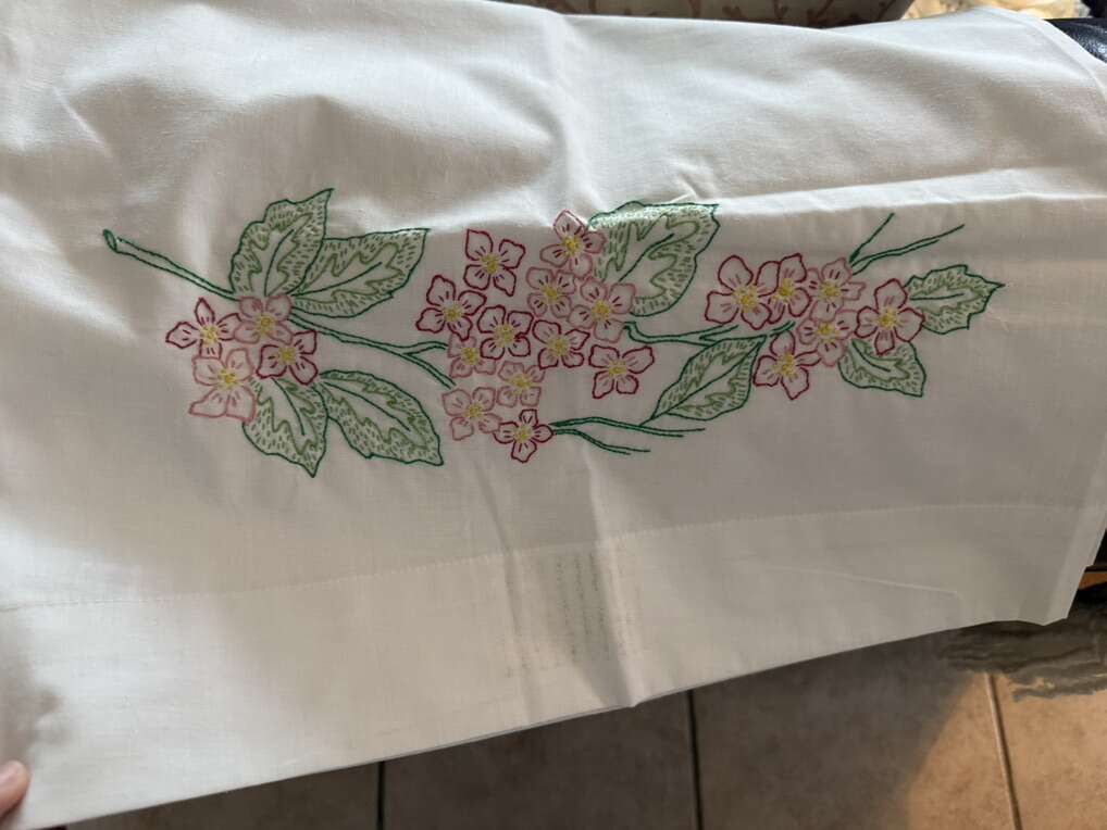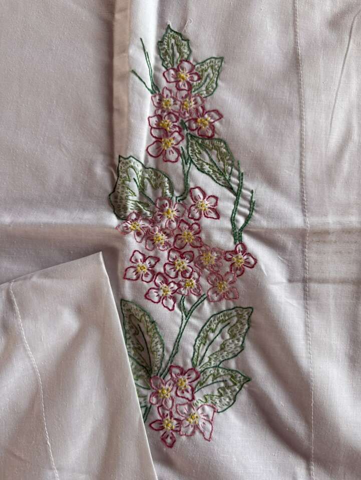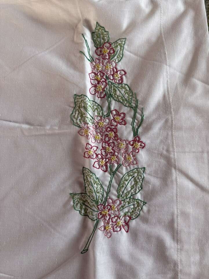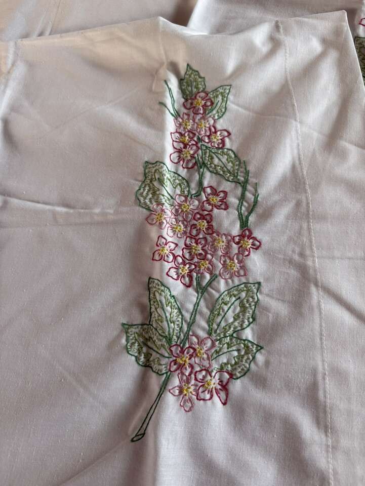 Set of 2 antique standard sized embroidered pillowcases 30 X 21 pink flowers they do have a couple light marks.
