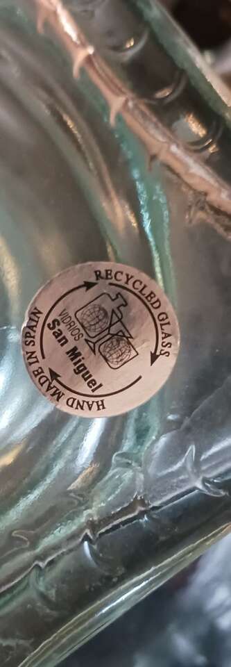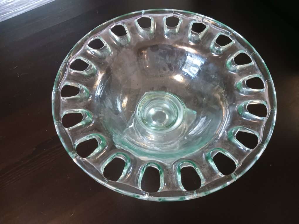 Unique Vidreous San Miguel bowl, handmade in Spain from recycled glass. Holes around rim top ( not sure what for). beautiful, no cracks or chips.