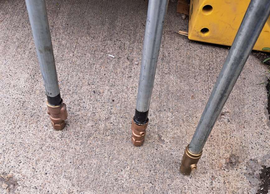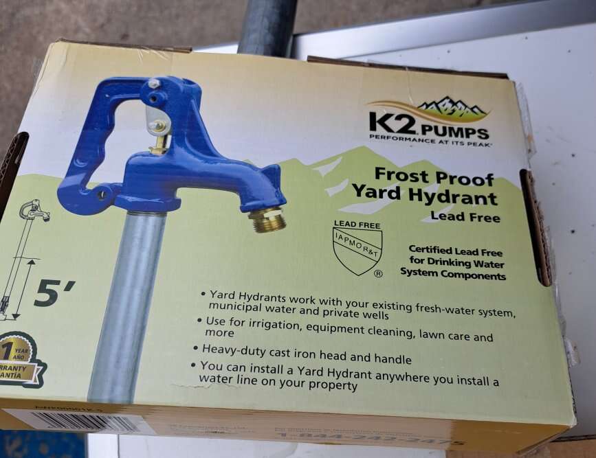 Venmo3/4 in. NPT x 1 in. galvanized steel pipe x 5'ft. Bury, 96-1/2" overall length, 36-1/2" above ground, Automatic draining will not freeze when shut off valve is properly installed below frost line and all devices are removed from nozzle I also have this one avaible shown in the pictures K2 PUMPS 50$ steel zinc plated 1" diameter pipe and 3/4" FNPT connection IAMPO Cerftified lead free to NSF/ANSI 372-2016 Over all pipe length- 4.25', bury depth- 2, height above ground- 2.25' proflo #PFXEM7502 1" frostproof yard hydrant, bury depth ot 2' ft, 51-1/2" overall length, 3/4" FIP inlet x 3/4" FHT outlet connection, 1" galvanized pipe, $ 90 obo if you are interested send me a message.