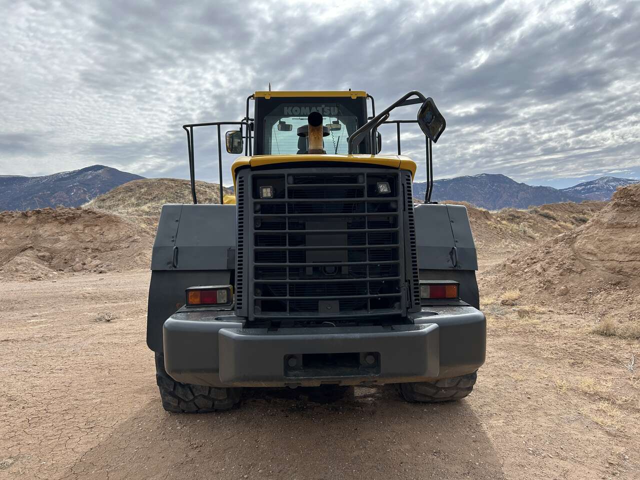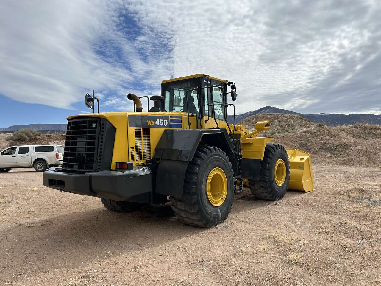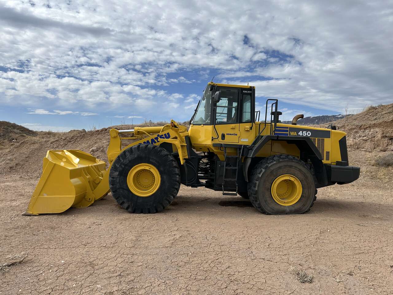 2007 Komatsu WA450-6 Wheel Loader with 21323 Hours showing, 5.5 Cubic Yard Bucket, 273 HP Turbo Engine, New Paint, Enclosed Cab, Heat/AC and Radio, Good Tires. Needs some hydraulic leaks repaired, a new fan drive motor, seat, and new lifting cylinders for both the left and right engine side panels. Asking below market value at $27,500.00 - Located near Cedar City, UT