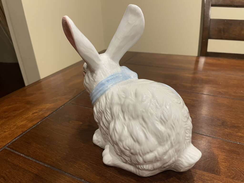 I have a vintage ceramic or porcelain bunny rabbit in great shape. It is about 8 inches tall and 8 inches long. See my other ads for jewelry, artwork, home decor and more.