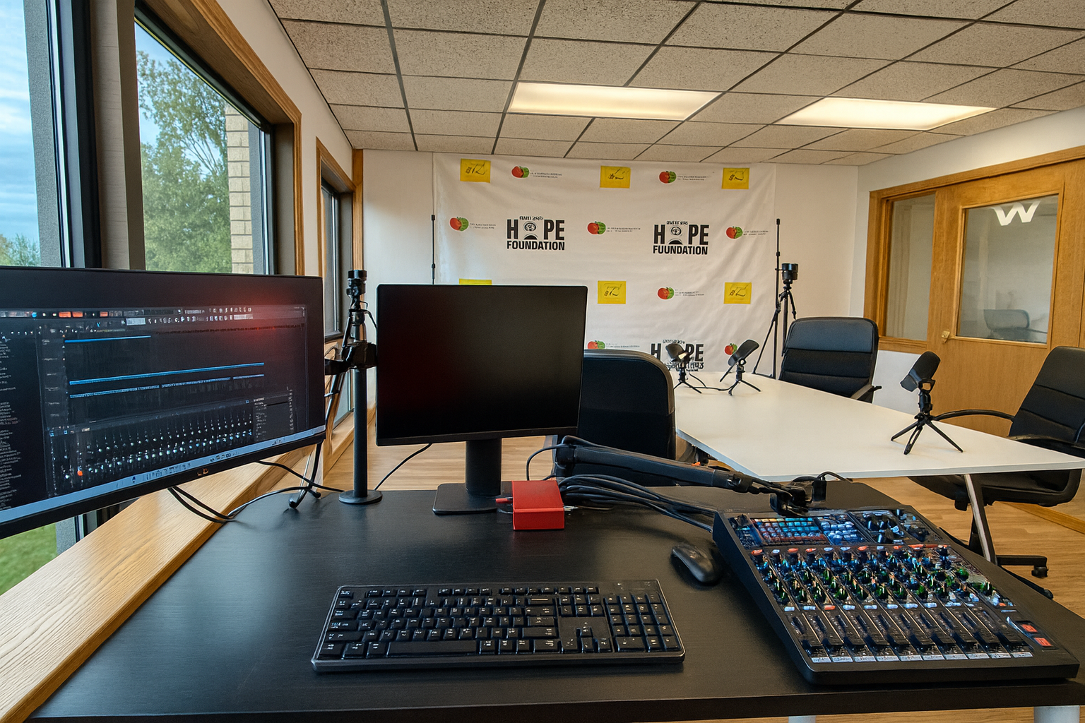 This is a perfect business incubator studio for the new entrepreneur with great company startup potential! Podcast room and production room included.