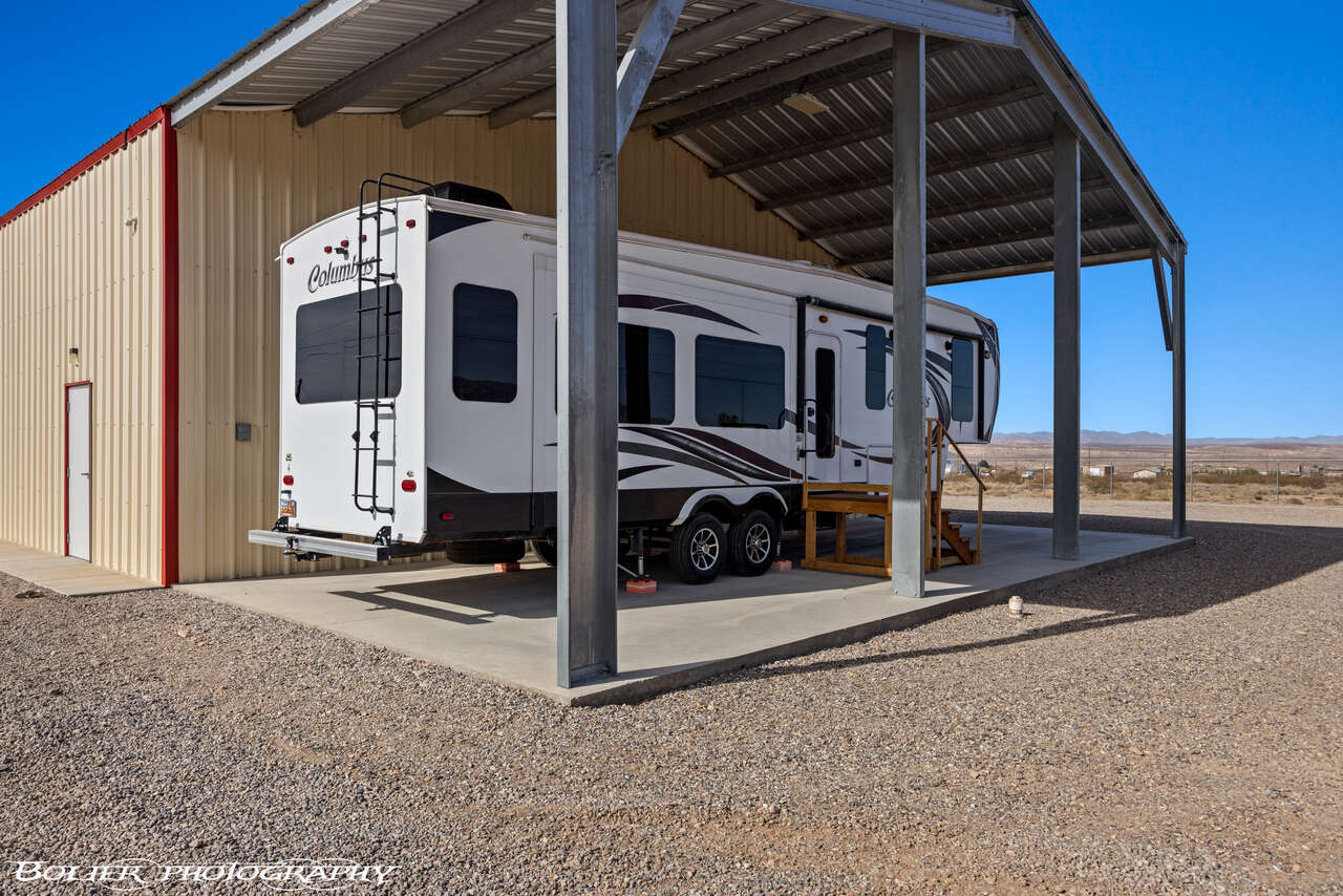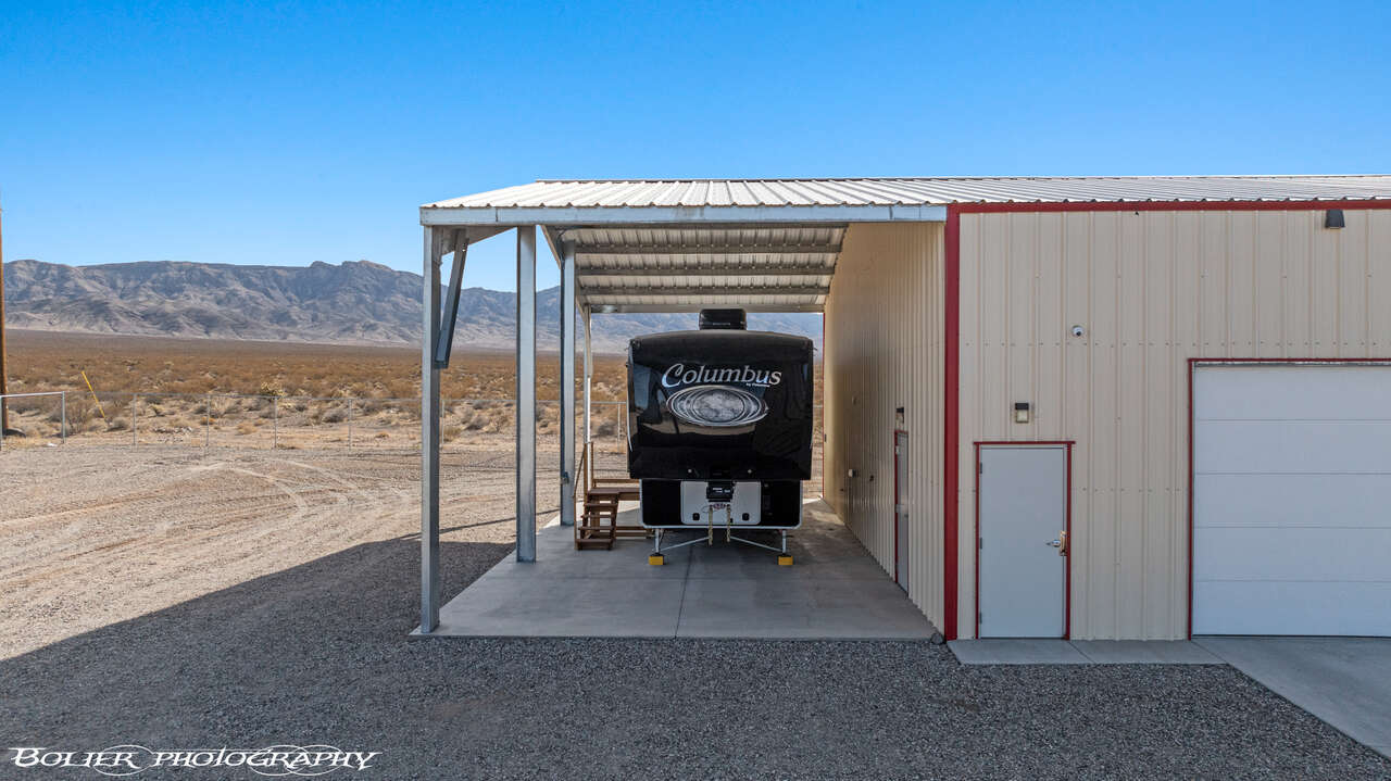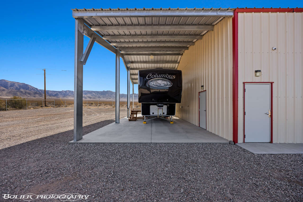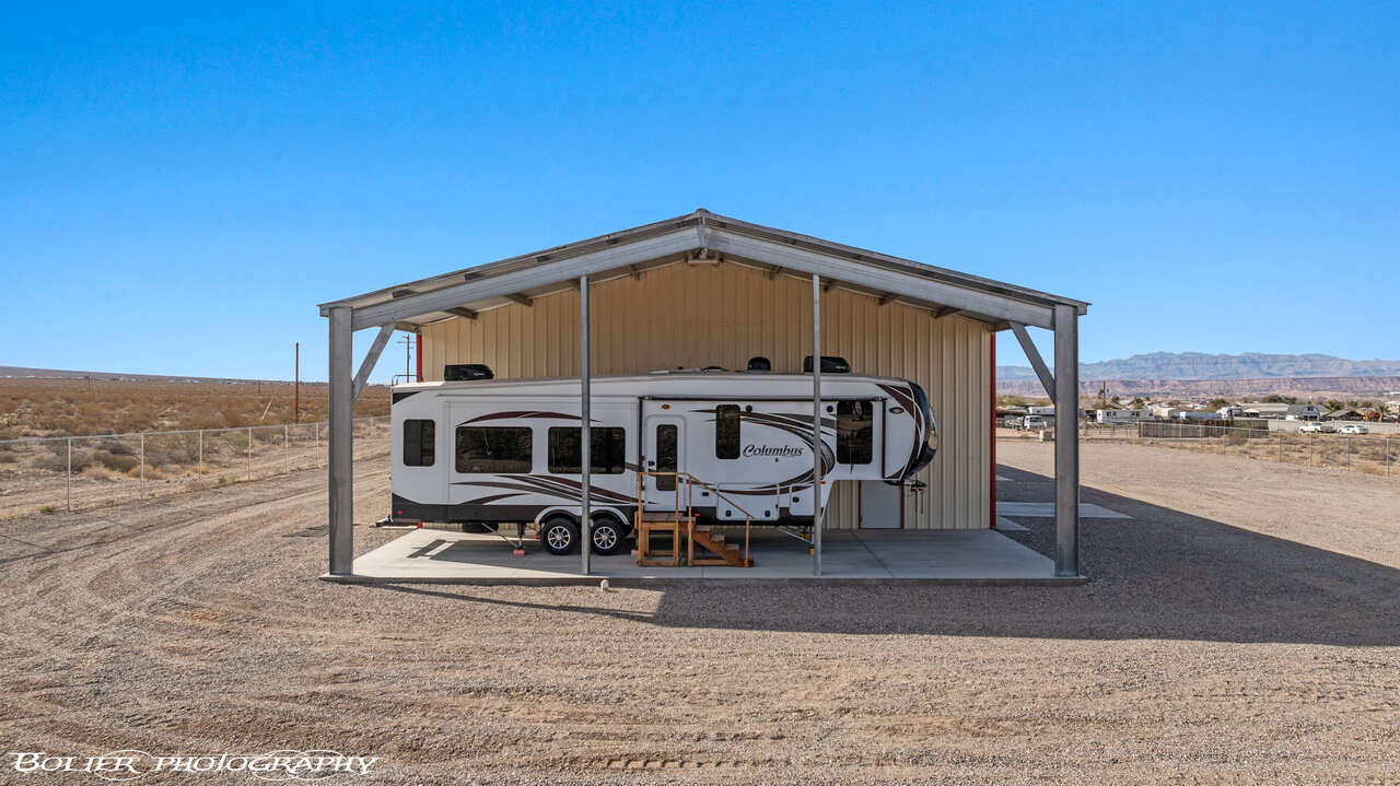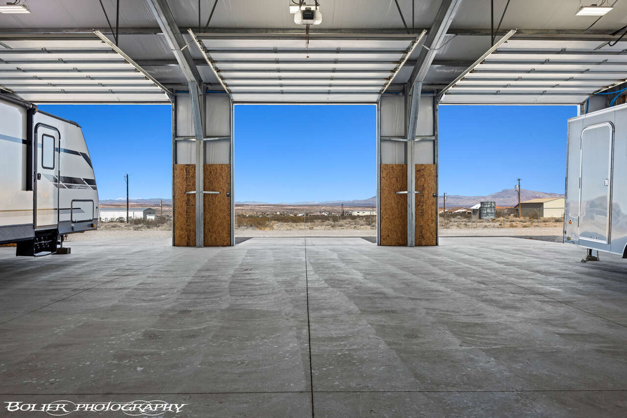 Looking for the Ultimate Space to Store Your Toys, Run a Business, or own your Dream Shop? This prime property is located at the corner of Scenic Blvd and Elbow Canyon Rd, just 6 miles from Mesquite, NV. Built in 2023, this brand-new, steel structure spans 4,500 sq. ft., with a 100’ x 45’ layout and 18’ ceilings, offering endless possibilities. Whether you’re a hobbyist, business owner, or looking for a place to store your toys, this property has it all! Features: 1.06 Acre with option to purchase adjoining 1.06 Acre. RV Pad: Covered 20’ x 45’ area Three distinct spaces: Space #1: 1,800 sq. ft. workshop with climate control, two man doors, and a 10’ x 10’ insulated automatic overhead door. High-output LED lighting, sealed concrete floors, 5-ton HVAC, Rapid Air line system, OSB board protecting the insulation, and a half-bath. Washer/dryer w/ hookups. Space #2: 2,700 sq. ft. shop with three 14’ x 14’ insulated automatic Martin doors, designed for large RVs. 8’ x 14’ pallet racks, new 7.5 HP Jet air compressor, air fittings, and regulators. Integrated covered RV space with 50-amp service, sewer clean-out, and water bib. Additional Highlights: Security: Ubiquiti Dream Machine system with 12 cameras Fencing: Fully fenced with a 6’ chainlink heavy-duty fence, professionally installed by United Fence of Salt Lake City Private Water Supply: New 575’ well with 1 shared and 2 additional shares for sale Septic System: 1,250-gallon septic tank Gate Access: 20’ rolling gate with 4’ man gate Perfect for your ultimate man cave, a turnkey workshop, or a commercial space with plenty of room for toys, RVs, and anything else you need to store. Sunny northwestern Arizona is calling! Don’t miss this opportunity!Call Trent Graves at Premier Properties for more details or to schedule a showing: 702-682-1277 View the listing online: https://www.showthisproperty.com/3990-scenic-blvd/mls