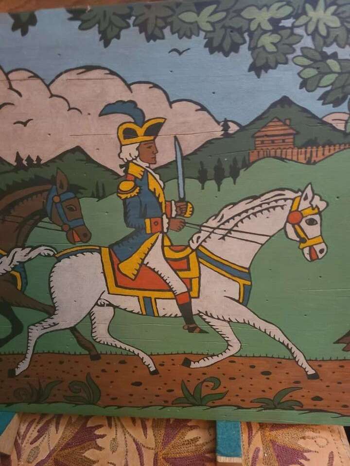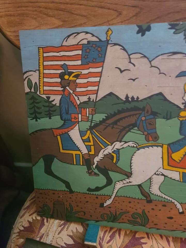 Hand print on wood of George Washington. Nice condition. 16" x 12".
