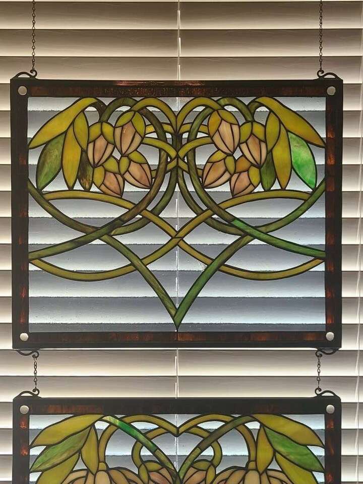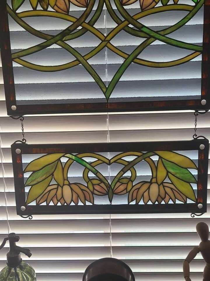 Beautiful water lily leaded glass by Jere. two piece. 28" x 20". Great condition.