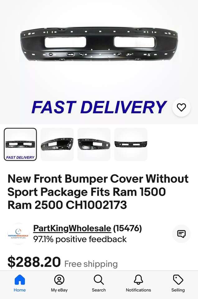 Description- Front black primed steel bumper for 1994-2001 Dodge Ram 1500/2500/3500 WITHOUT Sport Package. *ALTHOUGH THIS BUMBER IS BRAND NEW IT DID SUSTAIN A FEW MINOR SCUFFS FROM SHIPPING (see last photo). See photos for more product information and specifications.