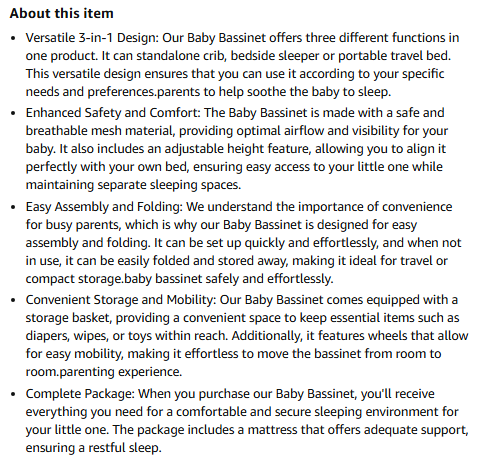 NEW IN BOX! Baby Bassinet, 3 in 1 Bassinets Bedside Sleeper, Adjustable Height Bedside Sleeper with Rocking Mode, Breathable Mesh, Storage Basket, Wheels, Easy Assemble & Folding (Gray)