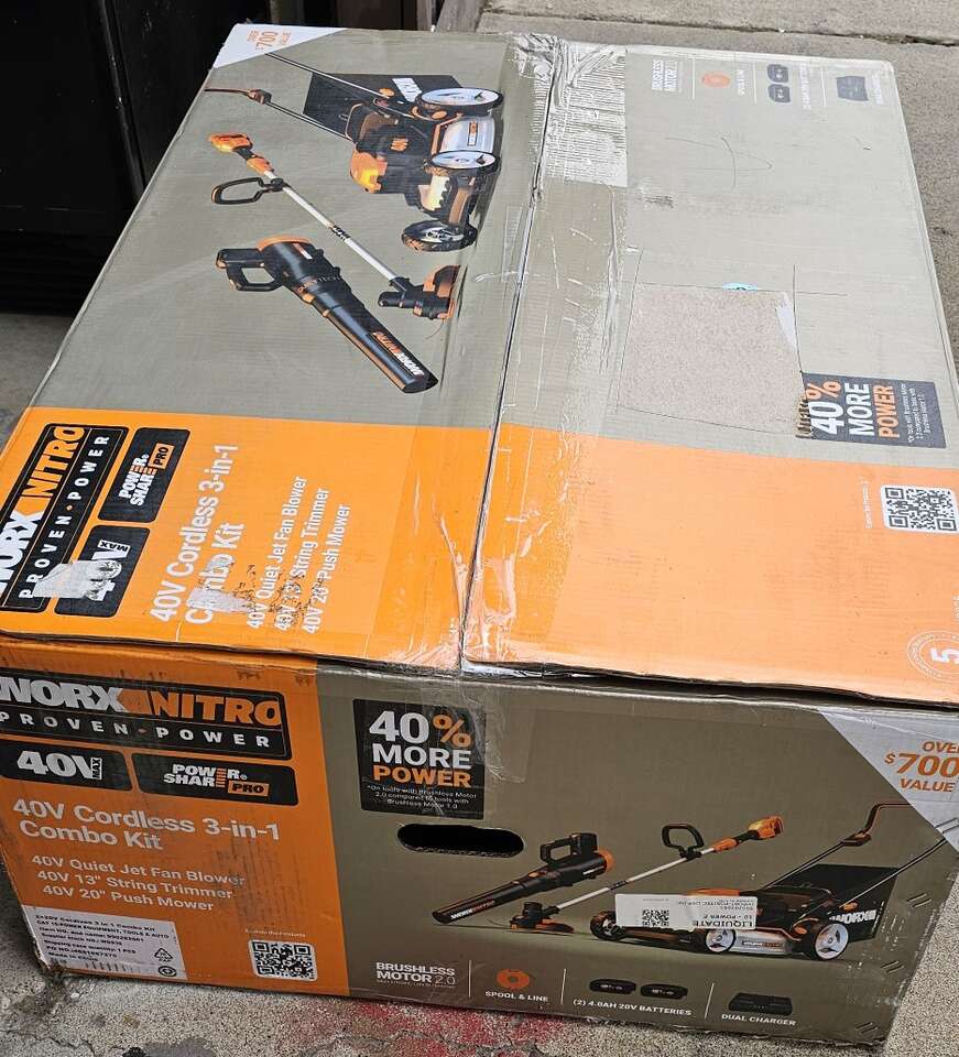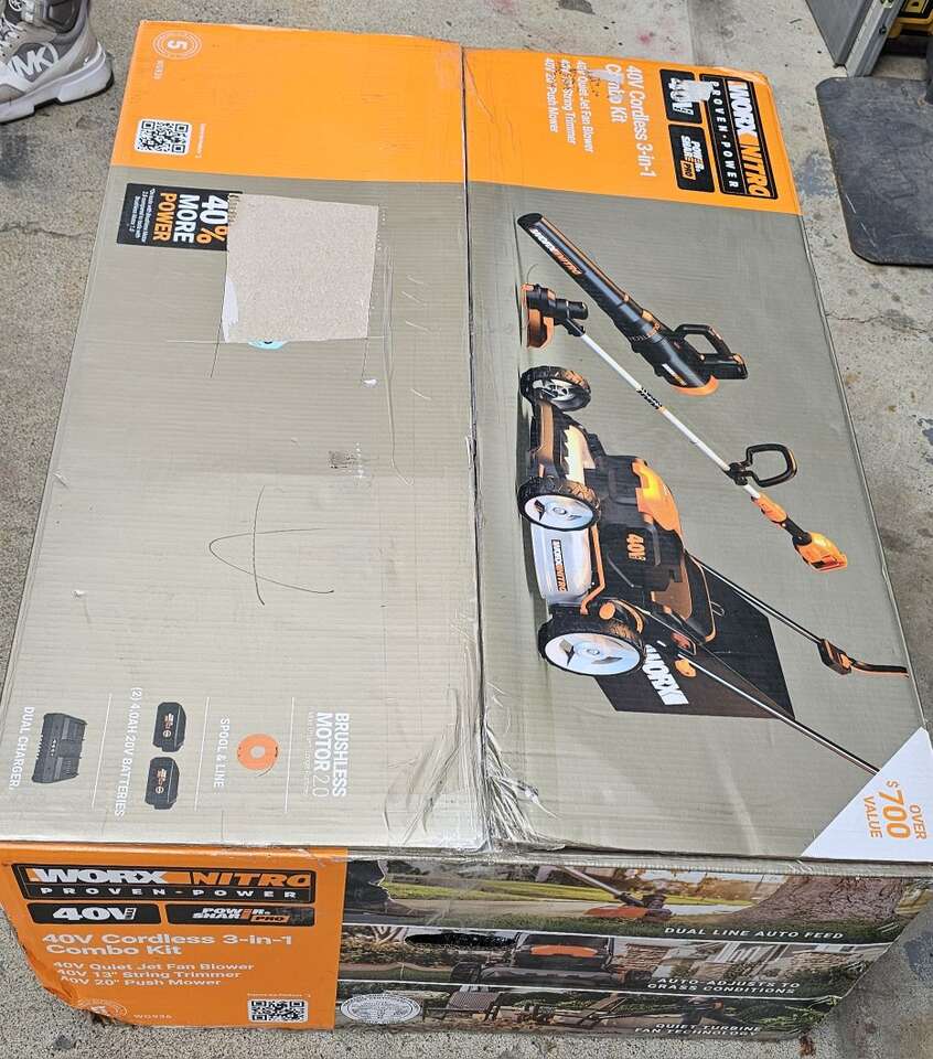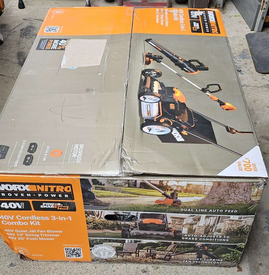 Worx Nitro 40V Cordless 3-in-1 Combo Kit, which includes a lawn mower, string trimmer, and blower. Key information about the 40V IntelliCut Technology: Some 40V mowers feature IntelliCut technology, which automatically adjusts cutting speed based on grass conditions, optimizing power and battery life. over $700.00 value I have for $390.00