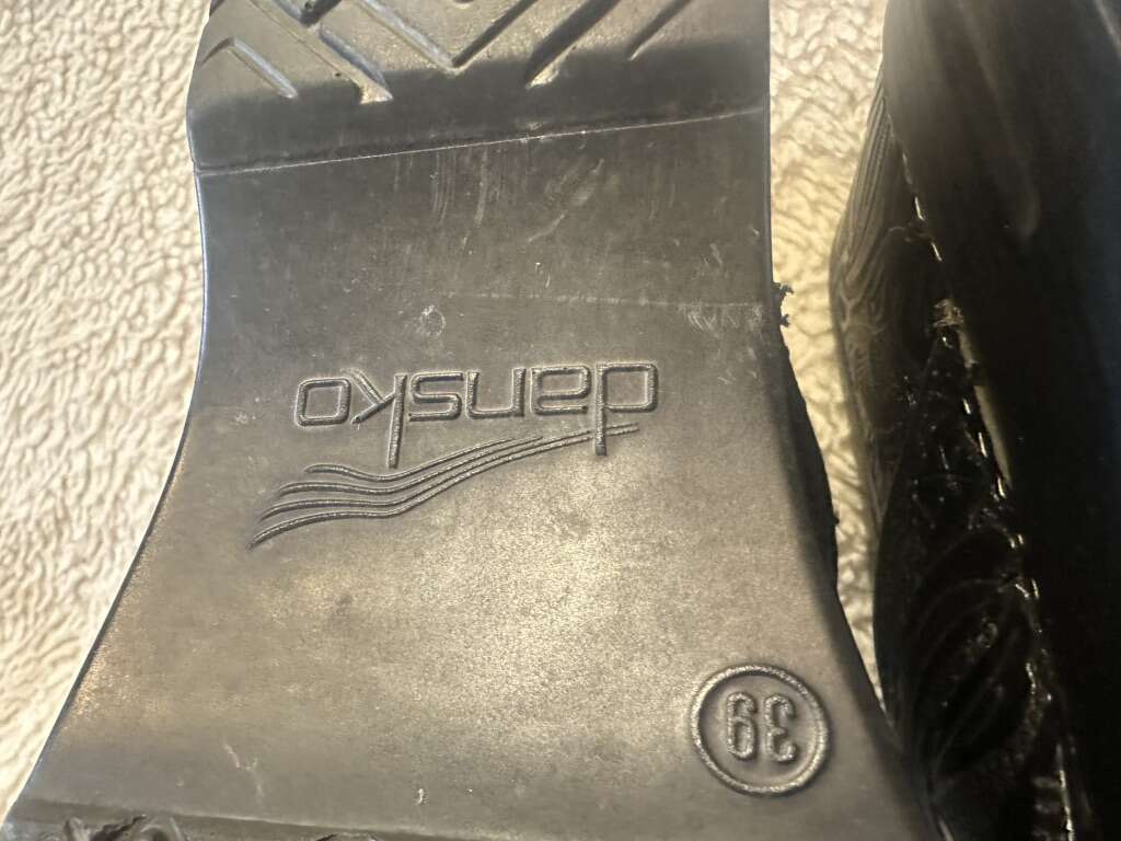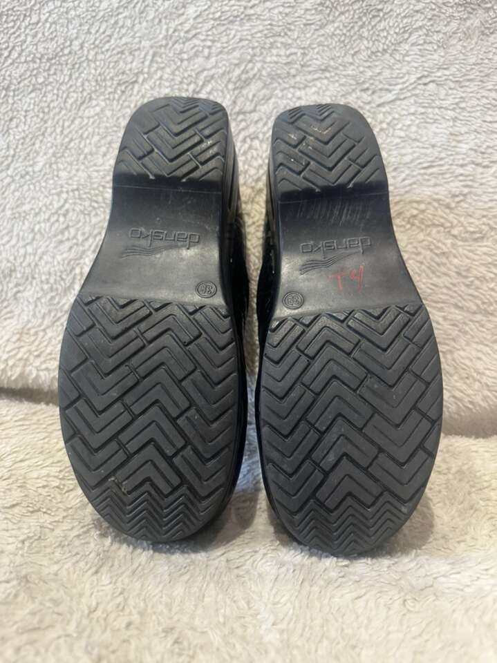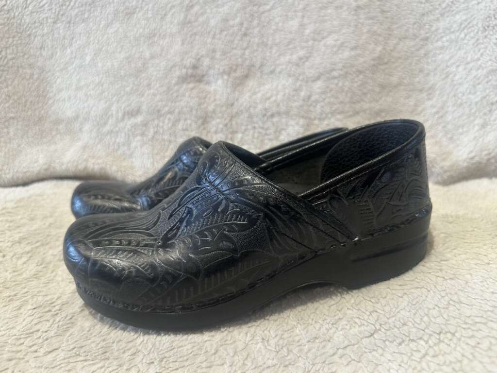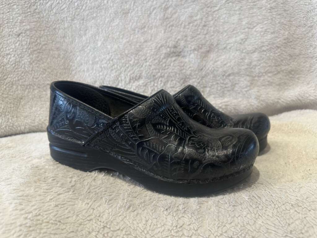 Dansko EU 39 or US women’s size 8 black with embossed leather design clogs. These are in good condition, see photos for details. I take cash or Venmo, but cash is preferred. Text is best. 801-201-4446. Check out my other ads for additional sizes and styles.