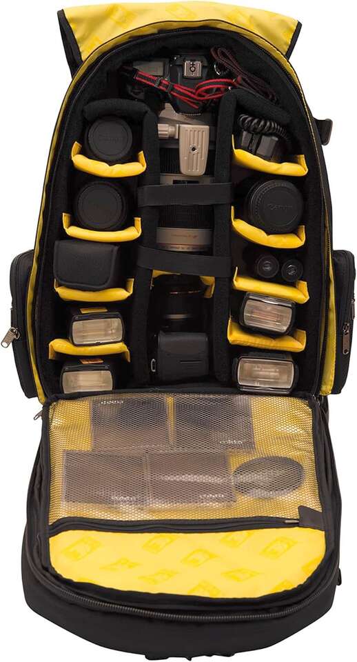 The ACPRO4000 is designed with multiple compartments that can be reconfigured to hold different lenses, cameras and accessories. You can carry two digital SLR cameras and lenses with additional room for 5-7 more lenses and a flash. You can configure the center area to hold a Camera with 70-210 2.8 professional lens attached.