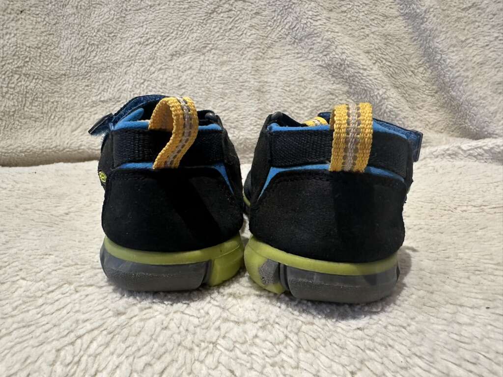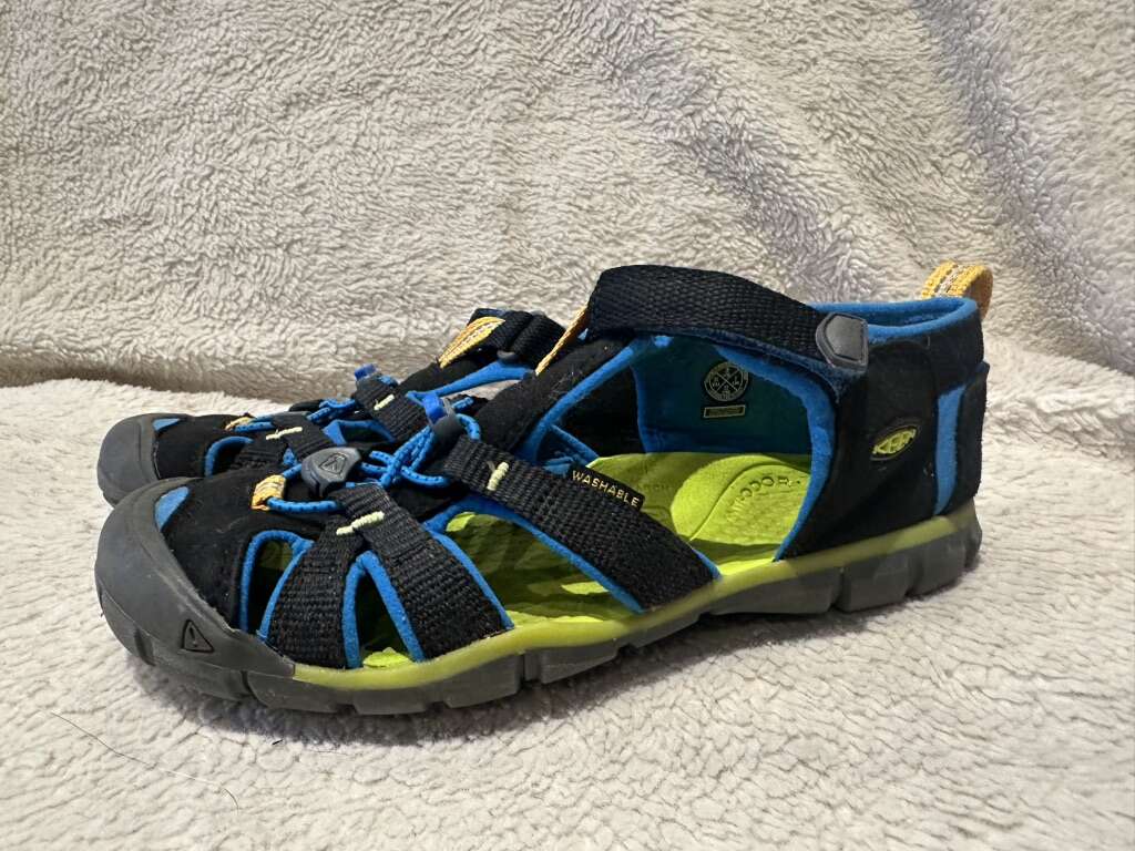 Keen youth, size 3 black with blue and yellow trim, washable hiking sandals. These are in excellent condition, photos for details. I take cash or Venmo, but cash is preferred. Text is best. 801-201-4446. Check out my other ads for additional sizes and styles.