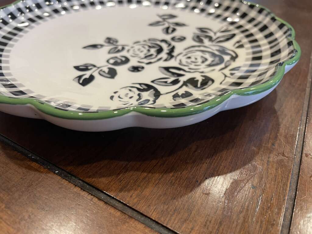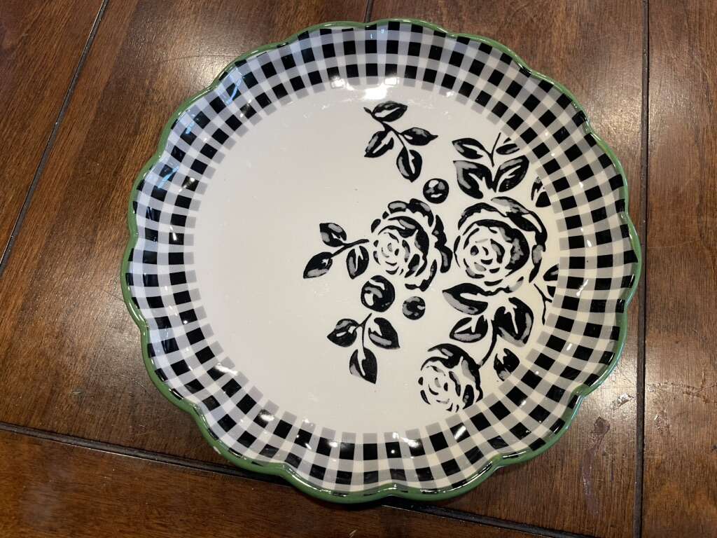 I have 2 Cracker Barrel stoneware cottage black checked plates with flowers and green scalloped edges. They are 8 3/4 inches across. They are in great condition. The ones I found for sale online were $38-$45 for 2. I’m asking $5. See my other ads for jewelry, artwork, home decor and more.