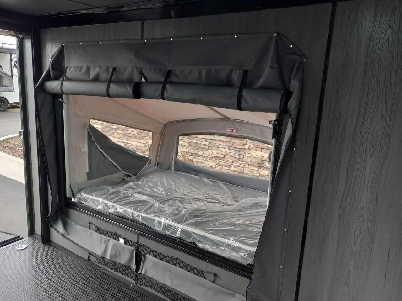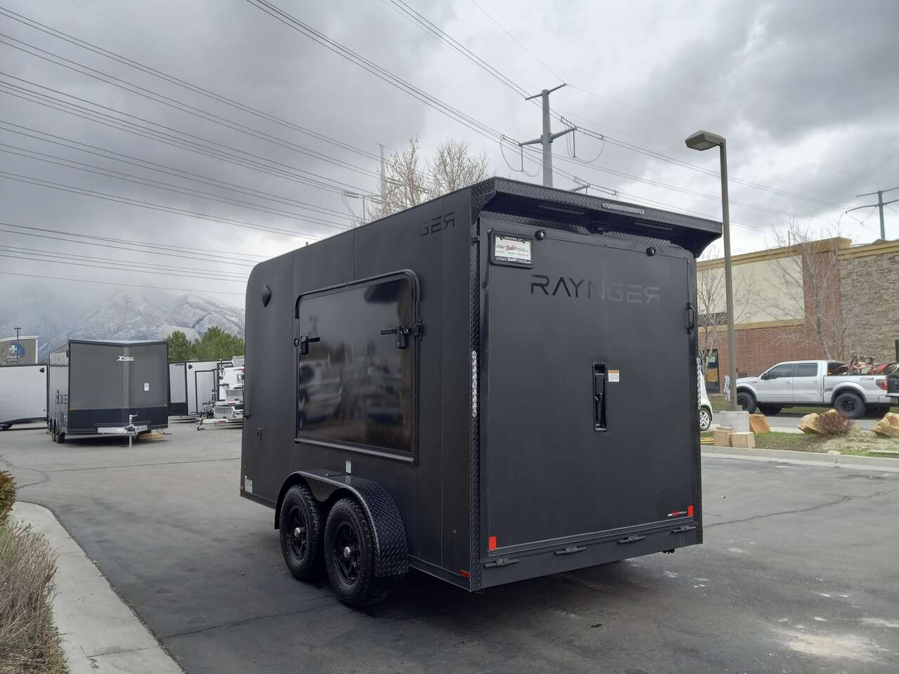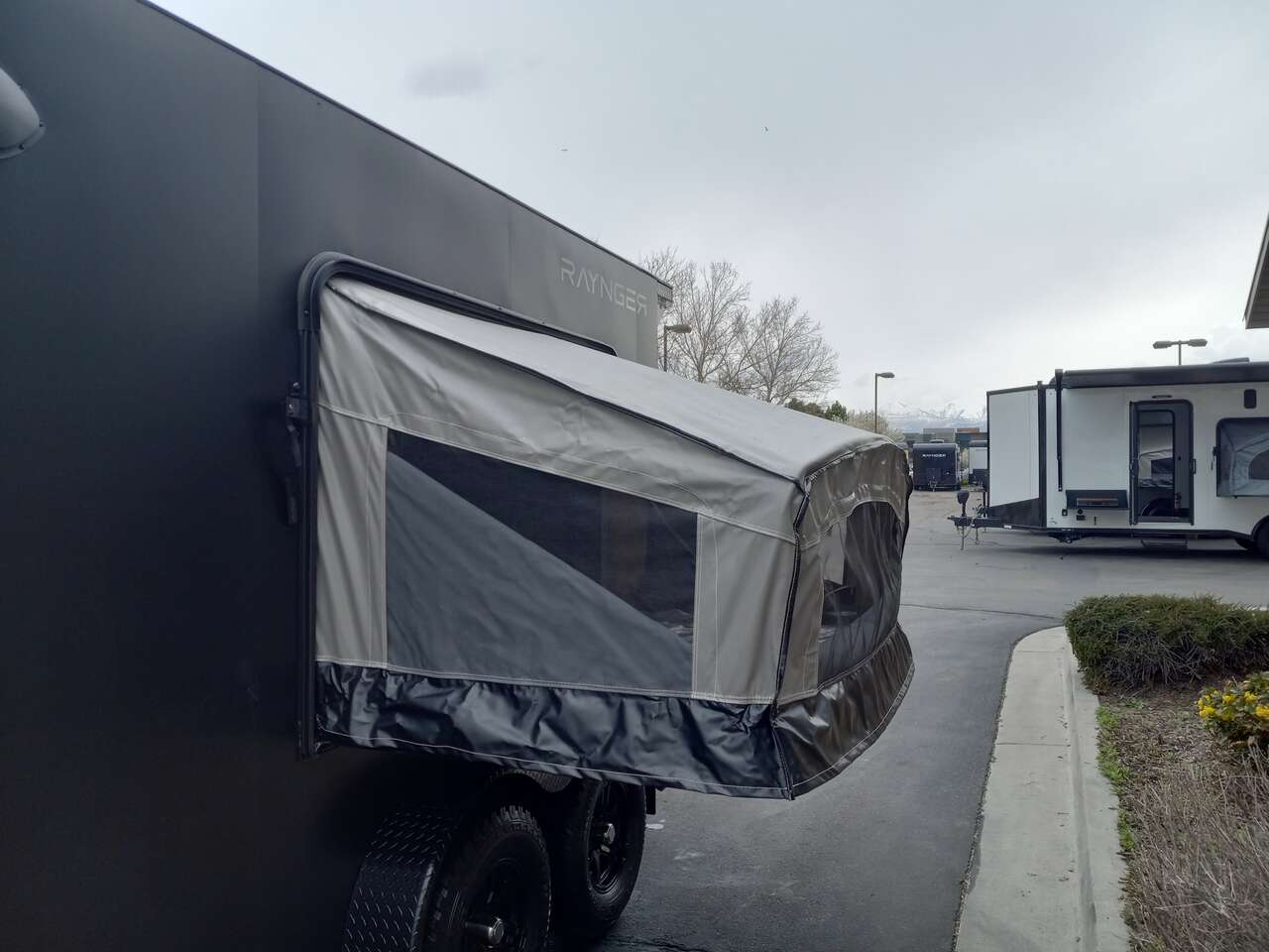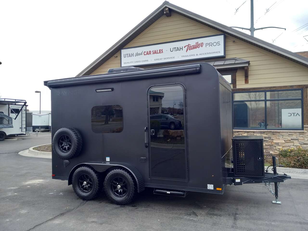 LIMITED TIME $248 A MONTH WITH ZERO DOWN WITH OUR SPECIAL LOCAL CREDIT UNION PARTNER!!! NO PRE-PAYMENT PENALTIES!!! NEW MODEL!!! RAYNGER PREMIUM OFF ROAD TOY HAULER CAMPER!!! 19 INCH GROUND CLEARANCE!!! OFF ROAD TIRES!!! FULLY INSULATED!!! HEATING AND A/C!!! WET SOUND STEREO!!! FOLD OUT/POP OUT TENT WITH MATTRESS!!! Aluminum Ventilated Locking Generator Box!!! 11.1 Foot Long Garage Space!!! And Much MUCH MORE!!! Check out our Specs!!! Also available in 18 foot models. 18 Foot Models can have 3 Fold Out Beds/Pop Out Tents. 16 Foot and 18 Foot Models will fit ANY stock 4 Seater Side by Side • 6” I Beam Frame• Flat Top Design• Flat Front Design• Wall Posts 16” on Center• Cross Members 16” on Center• Roof Bows 16” on Center• Rust Inhibiting Z-Tech Protection on Chassis• Ameraguard on Tongue• Ameraguard on Rear Bumper• Ameraguard Around All Door Openings and Stepwell• Ameraguard Around Edges of Ramp Door• 3500 LB Spring Axles• 2-5/16” Coupler• One-Piece Aluminum Roof• ST235/75R15 Aluminum Wheels with Chrome Center Caps• 2000# Ramp Door with Eberhard Latch• 30” Tempered Glass RV Door with Screen Door• .030 Exterior Metal with Screwless Sides• 24” Black Stoneguard• 3” Black Bottom Trim• Sand Pad• Black Door Hold• 2.7mm Charcoal Textured Vinyl Ceiling • 9mm Charcoal Textured Vinyl Walls• 3/4” Engineered Wood Floor with Rubber Coin Overlay• (6) 1200 LB Floor D rings Installed with Backer Plates• LED Clearance Lights and Tail Lights• LED Back-up Lights• No Show Wheel Box• Spoiler with Toggle Switch• RV Step• 7’ Interior• (2) 17” Chrome Base Lights with Switch• (1) Black 17” Spot Light with Switch• (1) 30 Amp Panel with Marine Plug• A/C Unit with Heat Strip• (3) Interior Recepts• (1) Exterior Recept• 12V Battery and Charge Line• Prep for Backup Camera• Wet Sounds System• (3) Blue Interior Cabinet Lights• (1) 6’ Section of Flex Lights• Black ATP Rear Header and Hoop• Black ATP Fenders• Insulated Walls & Ceiling• Base Cabinets• Overhead Cabinets with Netting Over Compartments• Pop Out Tent• Black ATP Storage/Generator Box Mounted On Tongue. STOCK #U713TP