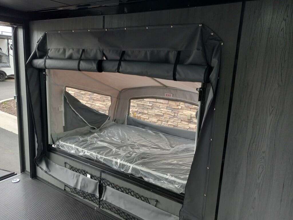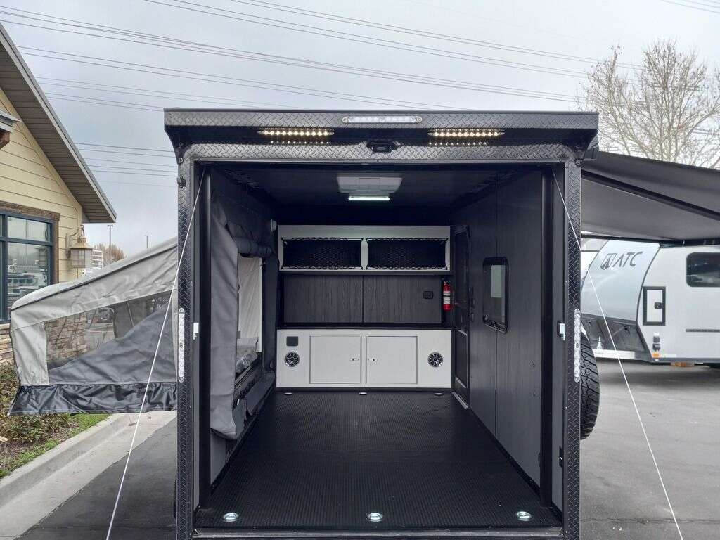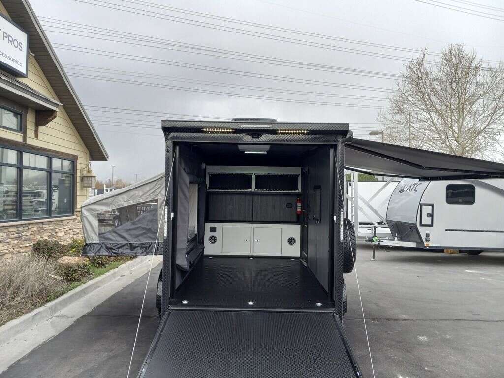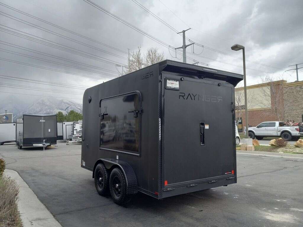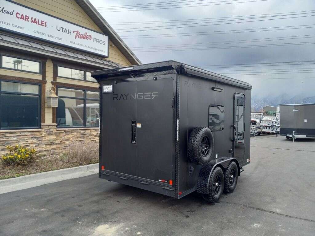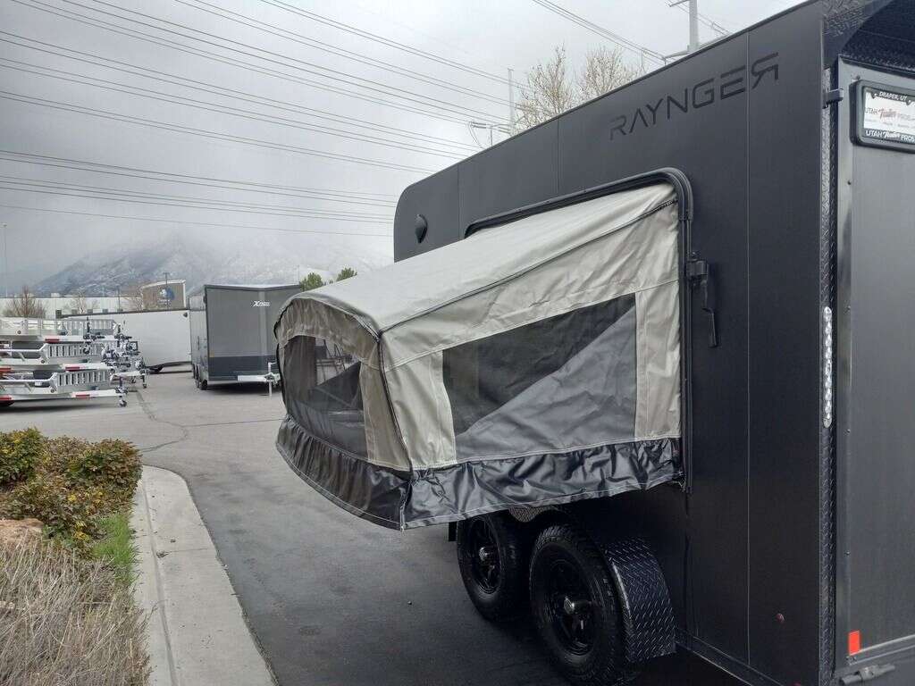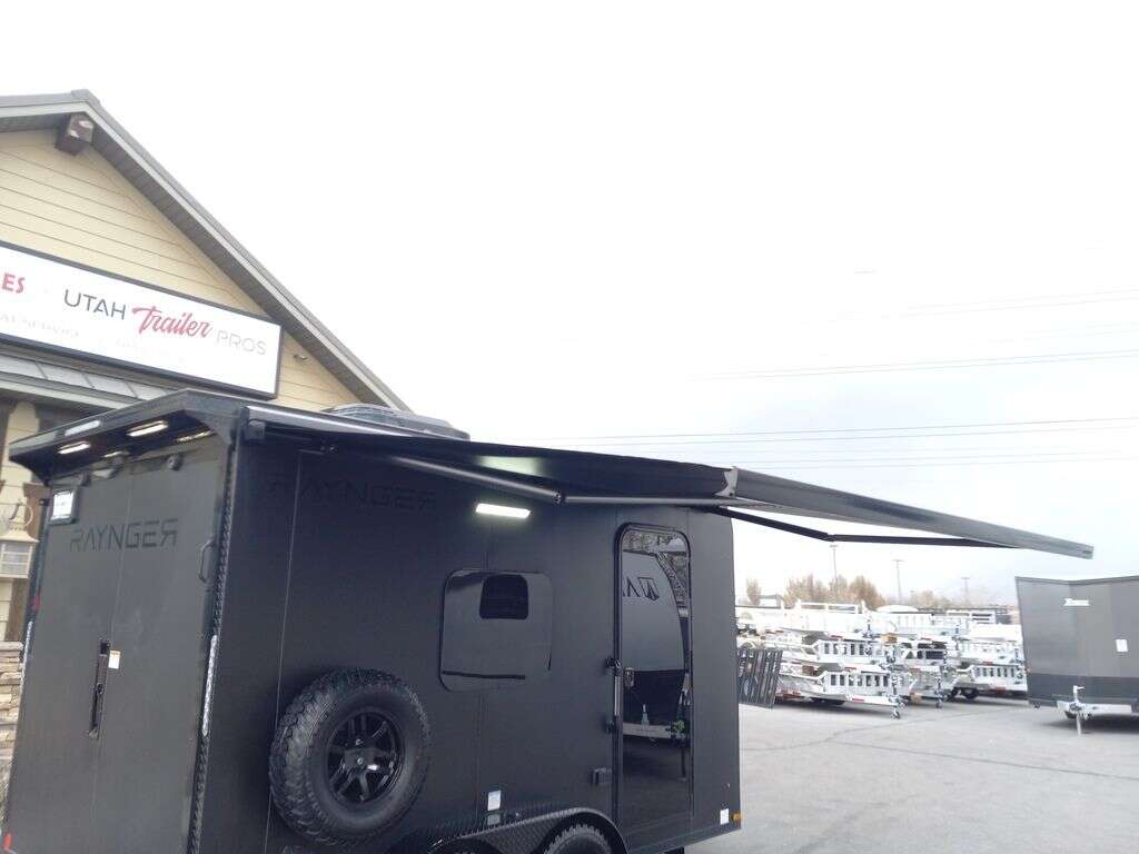 LIMITED TIME $248 A MONTH WITH ZERO DOWN WITH OUR SPECIAL LOCAL CREDIT UNION PARTNER!!! NO PRE-PAYMENT PENALTIES!!! NEW MODEL!!! RAYNGER PREMIUM OFF ROAD TOY HAULER CAMPER!!! 19 INCH GROUND CLEARANCE!!! OFF ROAD TIRES!!! FULLY INSULATED!!! HEATING AND A/C!!! WET SOUND STEREO!!! FOLD OUT/POP OUT TENT WITH MATTRESS!!! Aluminum Ventilated Locking Generator Box!!! 11.1 Foot Long Garage Space!!! And Much MUCH MORE!!! Check out our Specs!!! Also available in 18 foot models. 18 Foot Models can have 3 Fold Out Beds/Pop Out Tents. 16 Foot and 18 Foot Models will fit ANY stock 4 Seater Side by Side • 6” I Beam Frame• Flat Top Design• Flat Front Design• Wall Posts 16” on Center• Cross Members 16” on Center• Roof Bows 16” on Center• Rust Inhibiting Z-Tech Protection on Chassis• Ameraguard on Tongue• Ameraguard on Rear Bumper• Ameraguard Around All Door Openings and Stepwell• Ameraguard Around Edges of Ramp Door• 3500 LB Spring Axles• 2-5/16” Coupler• One-Piece Aluminum Roof• ST235/75R15 Aluminum Wheels with Chrome Center Caps• 2000# Ramp Door with Eberhard Latch• 30” Tempered Glass RV Door with Screen Door• .030 Exterior Metal with Screwless Sides• 24” Black Stoneguard• 3” Black Bottom Trim• Sand Pad• Black Door Hold• 2.7mm Charcoal Textured Vinyl Ceiling • 9mm Charcoal Textured Vinyl Walls• 3/4” Engineered Wood Floor with Rubber Coin Overlay• (6) 1200 LB Floor D rings Installed with Backer Plates• LED Clearance Lights and Tail Lights• LED Back-up Lights• No Show Wheel Box• Spoiler with Toggle Switch• RV Step• 7’ Interior• (2) 17” Chrome Base Lights with Switch• (1) Black 17” Spot Light with Switch• (1) 30 Amp Panel with Marine Plug• A/C Unit with Heat Strip• (3) Interior Recepts• (1) Exterior Recept• 12V Battery and Charge Line• Prep for Backup Camera• Wet Sounds System• (3) Blue Interior Cabinet Lights• (1) 6’ Section of Flex Lights• Black ATP Rear Header and Hoop• Black ATP Fenders• Insulated Walls & Ceiling• Base Cabinets• Overhead Cabinets with Netting Over Compartments• Pop Out Tent• Black ATP Storage/Generator Box Mounted On Tongue. STOCK #U713TP SW092656